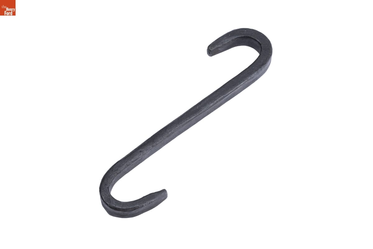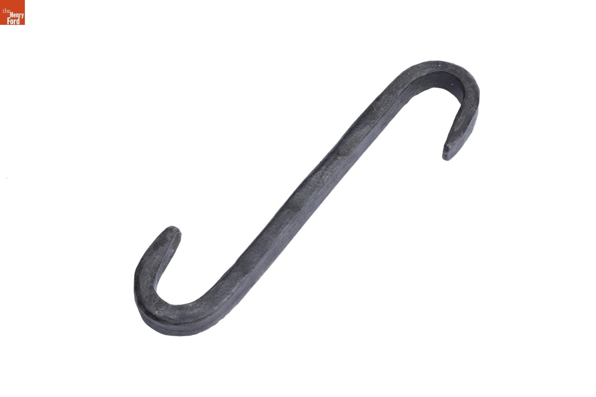 Pothooks like this one made cooking over a fire safe and more practical for homemakers in the 19th century. One end hooks onto the handle of the cooking pot, while the other suspends from a movable crane, positioning the pot safely over the fire.