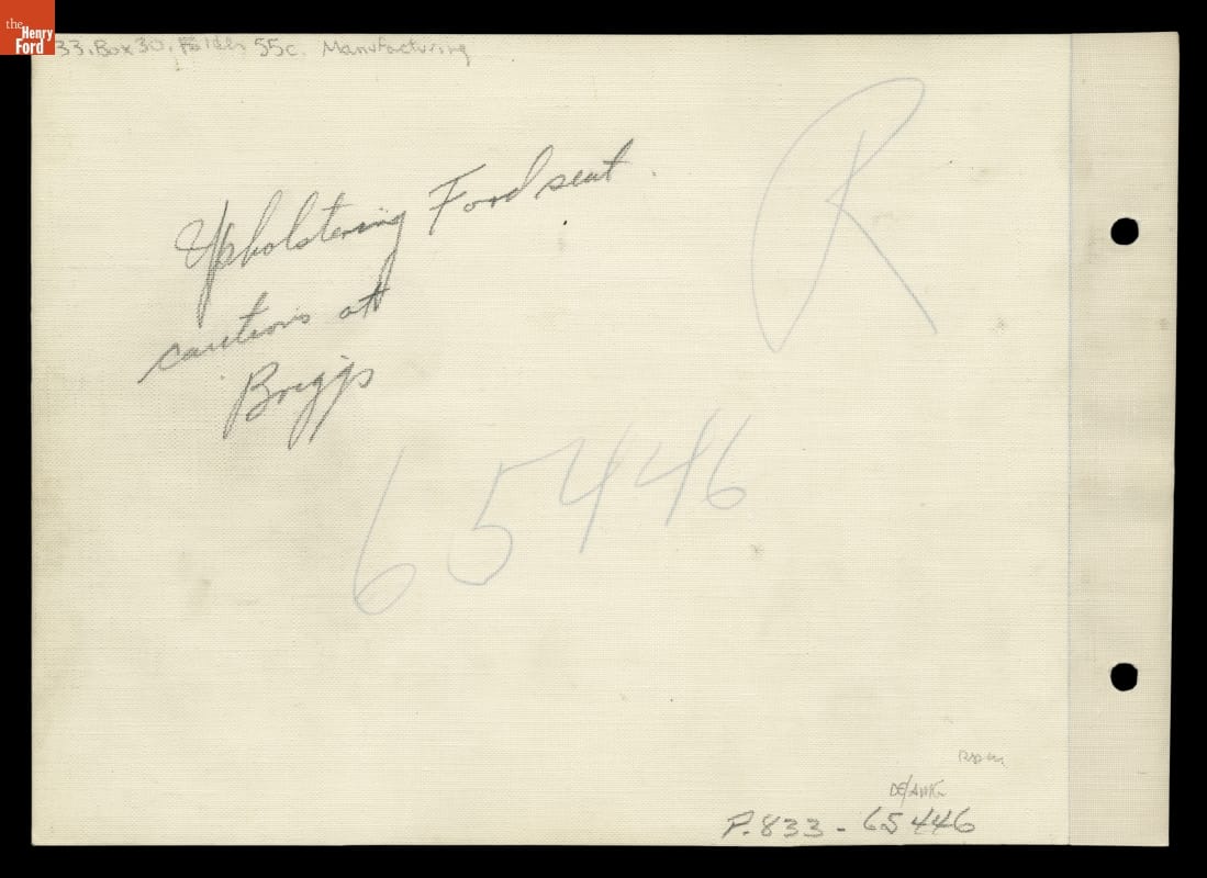 Upholstering Automobile Seat Cushion at Briggs Manufacturing Company, 1936
