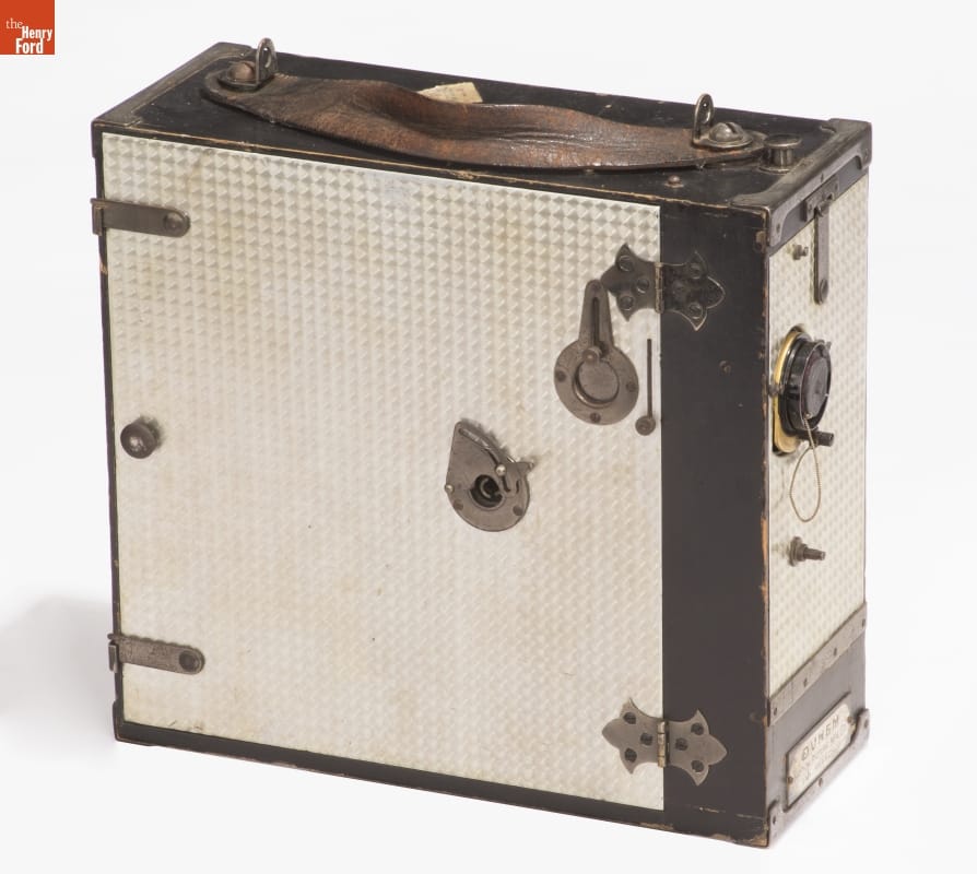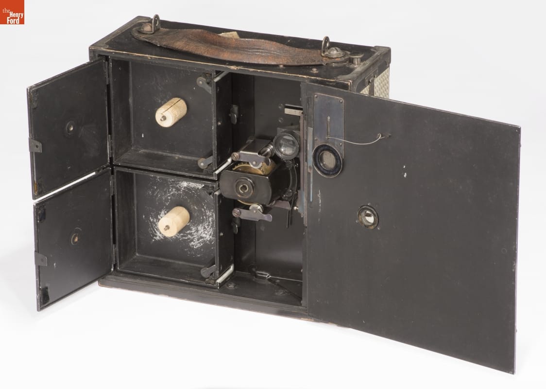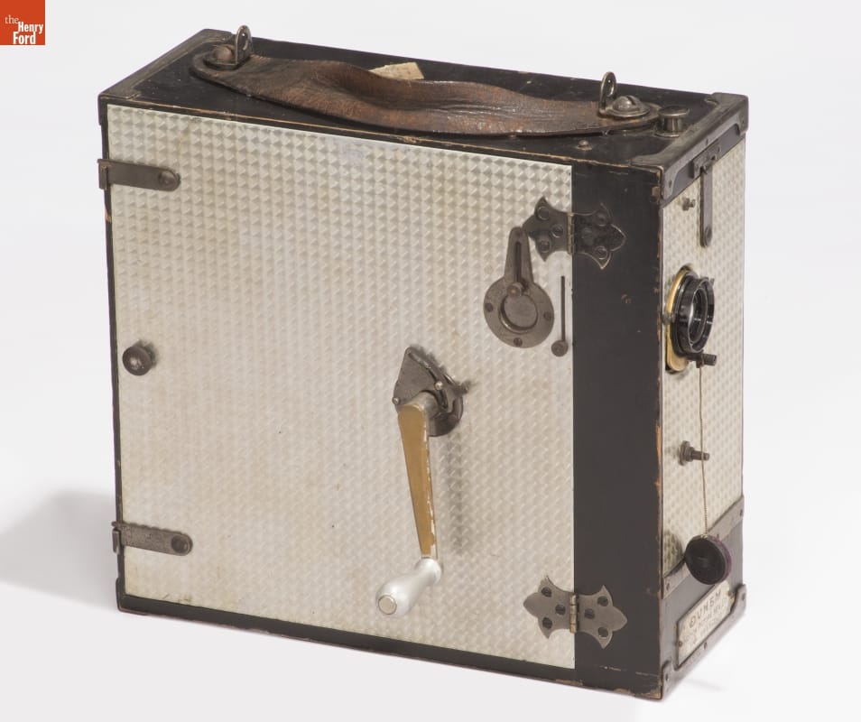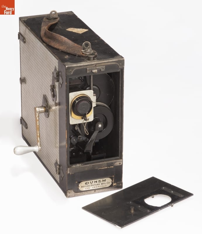 Motion picture camera manufactured by Burke & James, based in Chicago, IL; distributed by Duhem Motion Picture Manufacturing Company, San Francisco, CA.