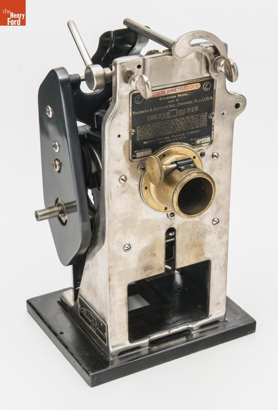 The kinetoscope was originally a solitary experience. Visitors to "peepshow parlors" paid a nickel to peer into a wooden cabinet through an eyepiece to see a short film loop. But Edison and his competitors wanted to project films on screens for large audiences. The Vitascope, Projecting Kinetoscope, and Kinetophone are examples of Edison's experiments to turn film into a communal experience.