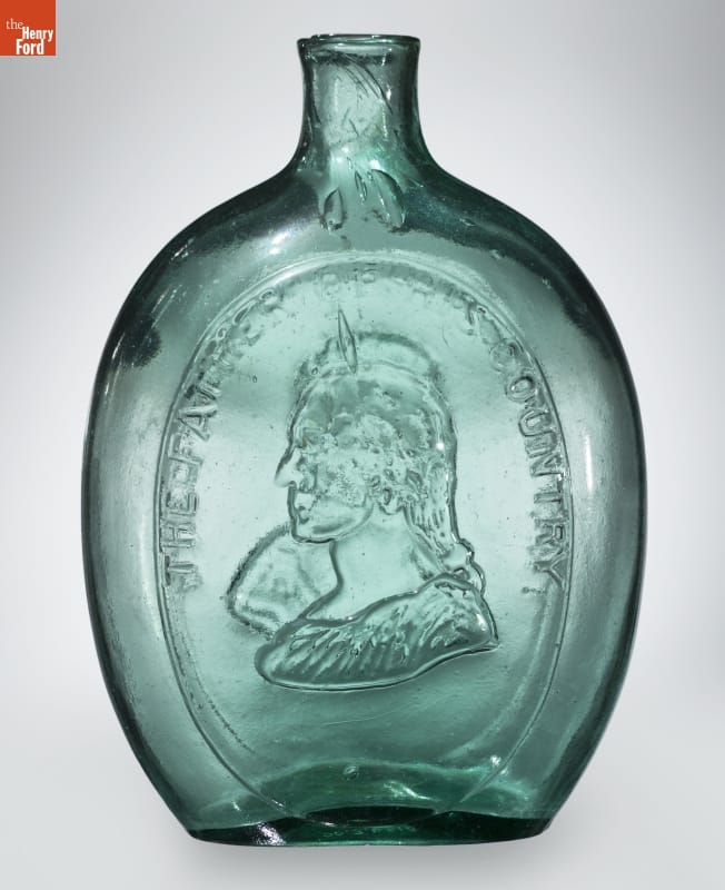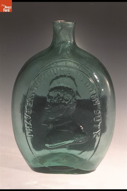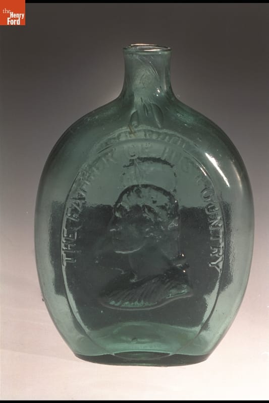 Whether depicted as commander-in-chief, the first president of the United States, or a symbol of the republic, George Washington is a common likeness on early American flasks. Washington appears on 72 recorded flask designs--more than any other person. This example depicts Washington as a classical statesman with major general Zachary Taylor, who became the 12th United States president in 1849.