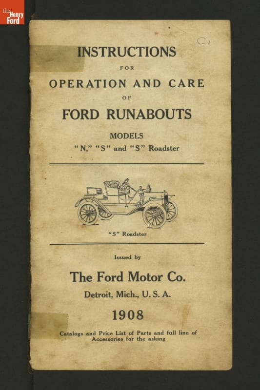 "Instructions for Operation and Care of Ford Runabouts Models 'N' and 'S'," 1908