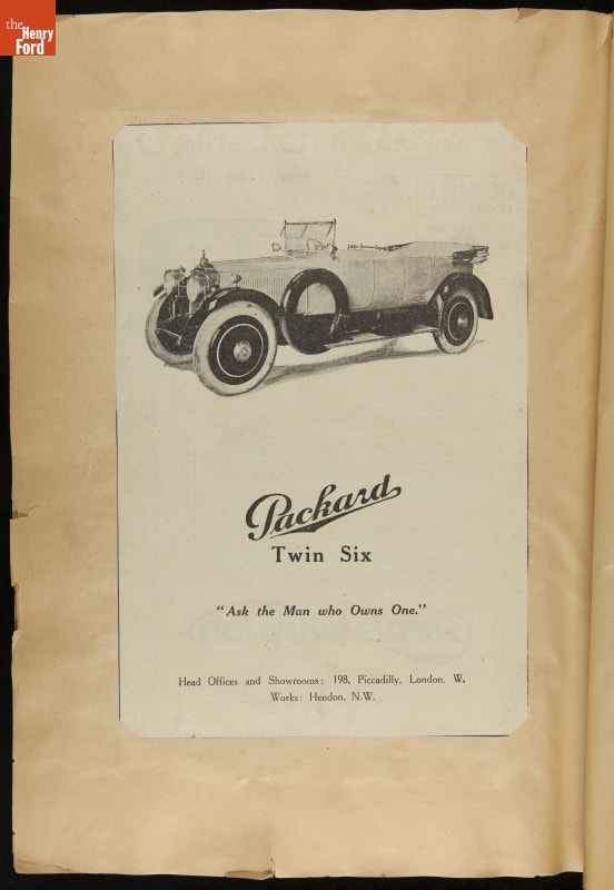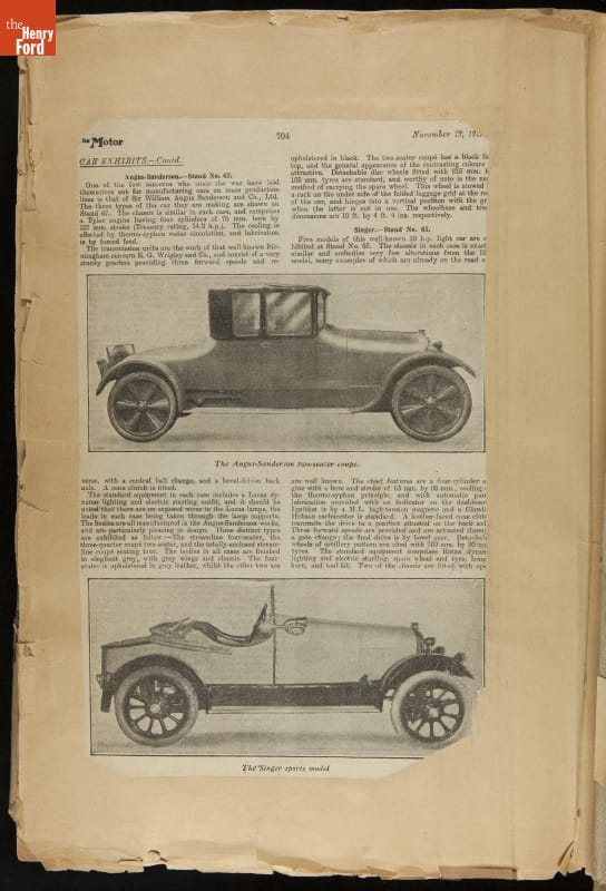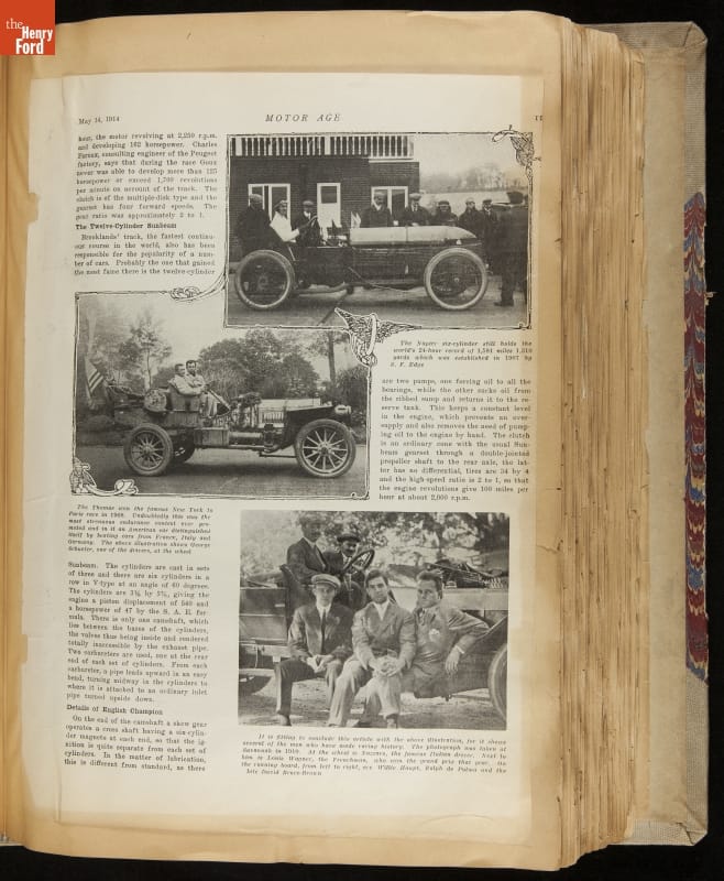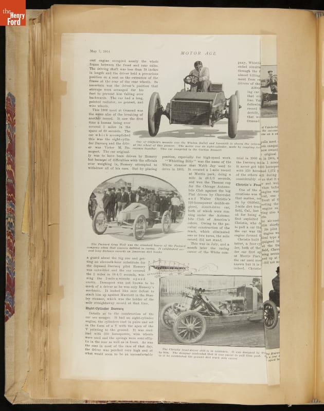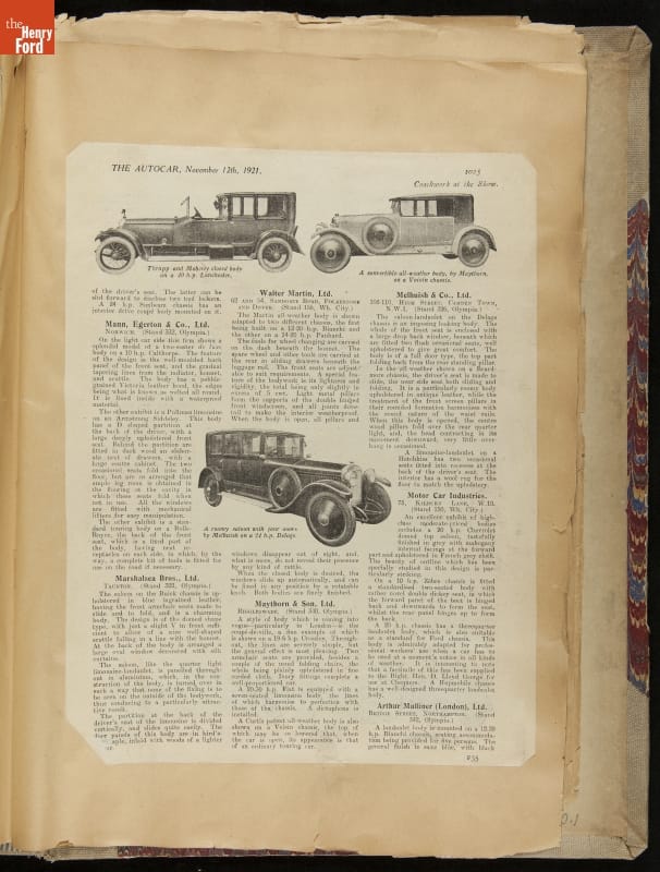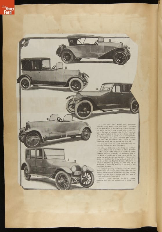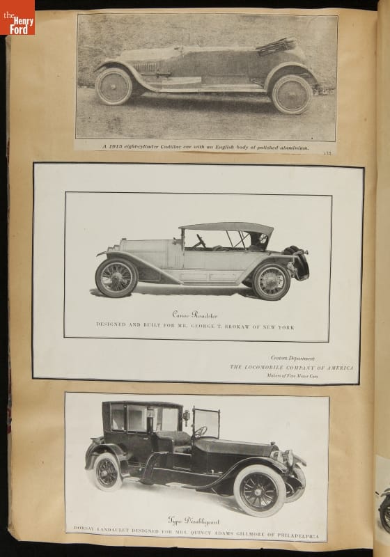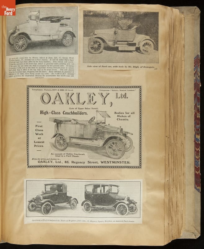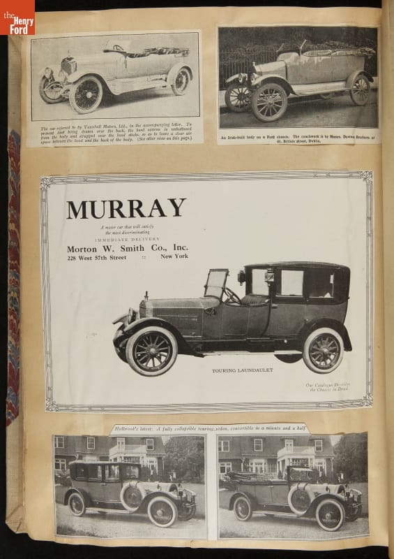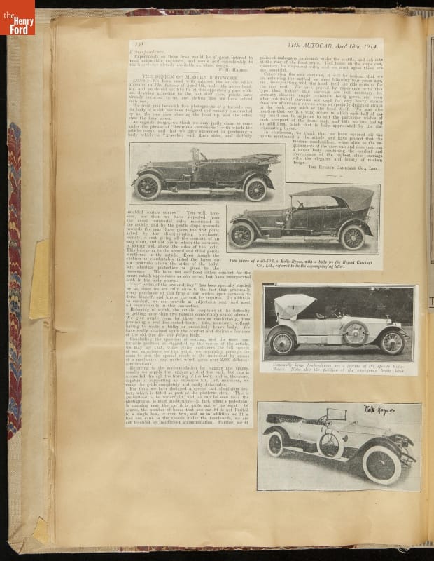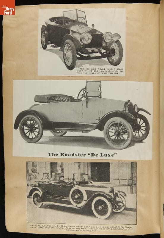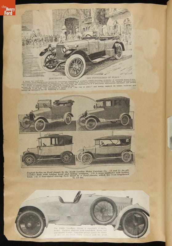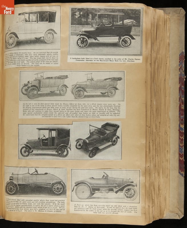 Given his father's obsession, it is no surprise that Edsel Ford was passionate about cars. While Henry Ford focused on the mechanical side of the automobile, Edsel Ford admired the aesthetics of automotive styling. This scrapbook features some of the designs that caught the younger Ford's eye. Elegant European marques like Hispano-Suiza and Rolls-Royce fill its pages.