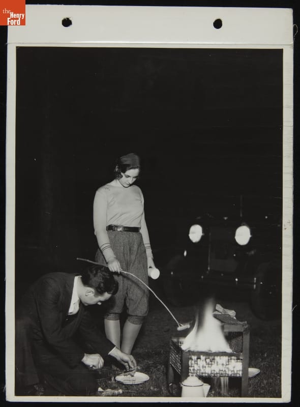 Cars and cookouts were a natural fit in the 1920s and 1930s. As roads improved, Americans were eager to go exploring, whether on short day trips or longer journeys. A roadside picnic saved money for budget-conscious travelers, or it provided a destination in itself for a family on a Sunday drive. Ford used these themes to market its charcoal briquettes.