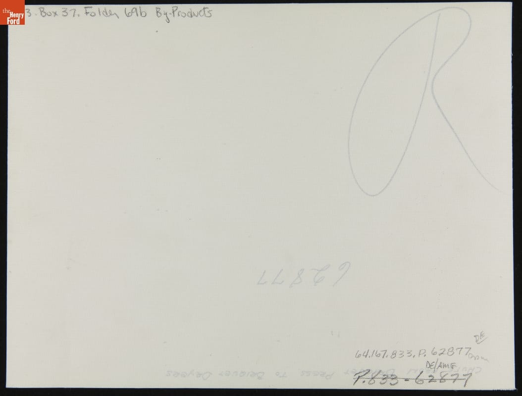 Ford Motor Company made charcoal from wood wastes produced by its Michigan lumber mills. Wood chips were collected, dried and burned in retorts. These special ovens captured the combustion gases so that they could be used to generate some of the energy needed to run the plant. The resulting char was crushed, mixed with starch and compressed into usable briquettes.