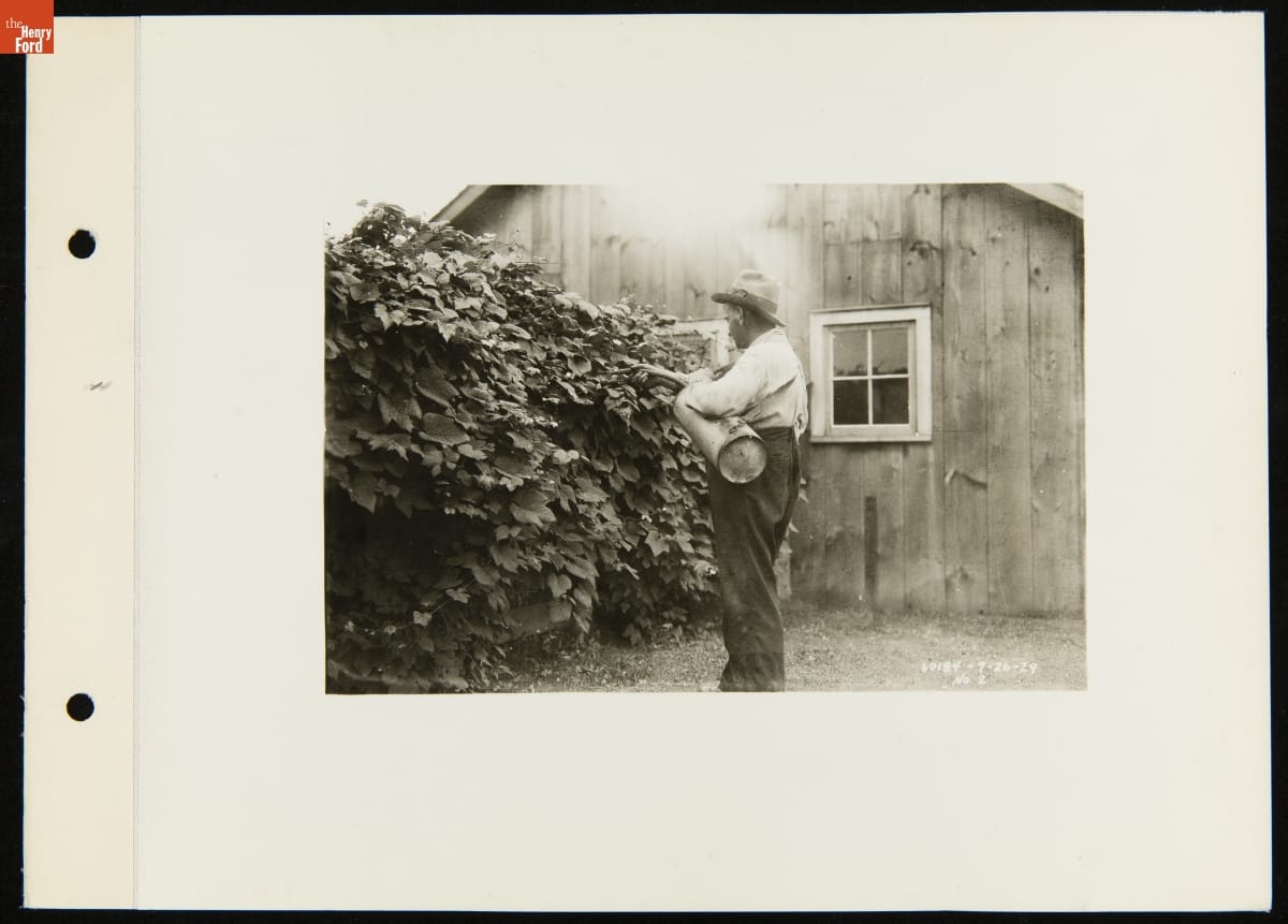 Man Spraying Garden with Ford Ammonium Sulphate Fertilizer, July 26, 1929