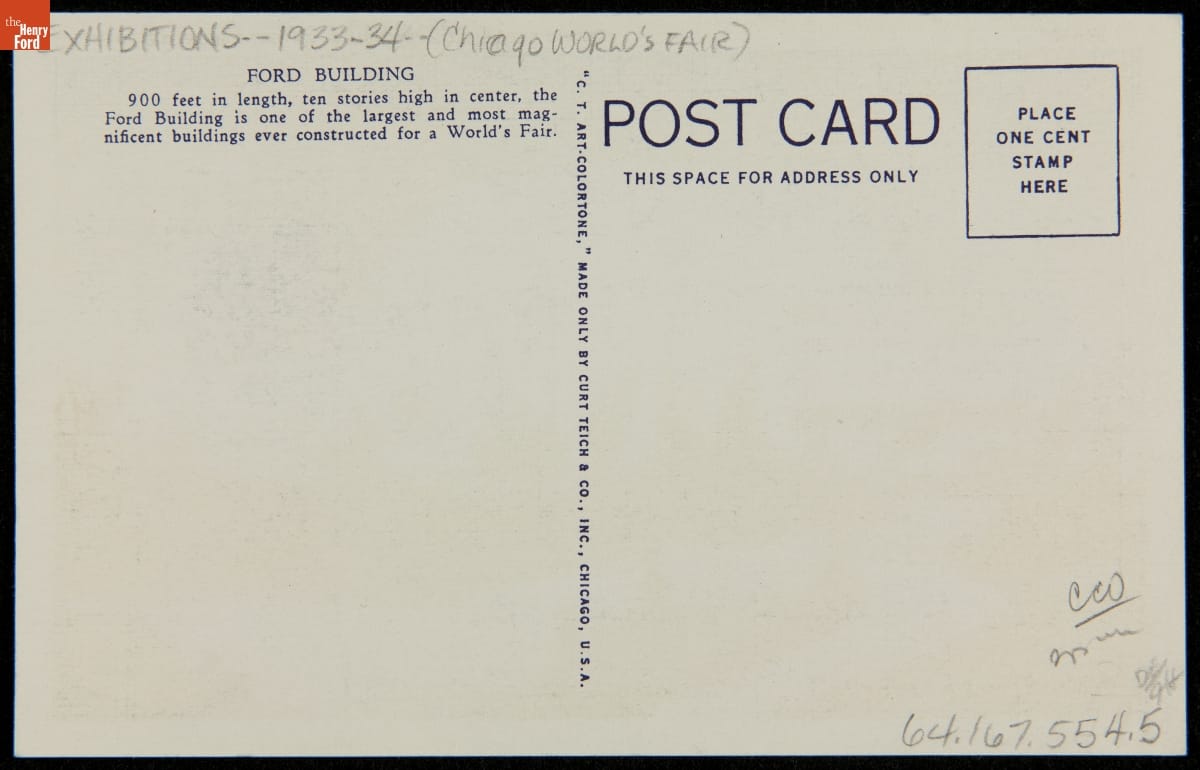 Postcard, Ford Motor Company at Century of Progress International Exposition, Chicago, Illinois, 1934
