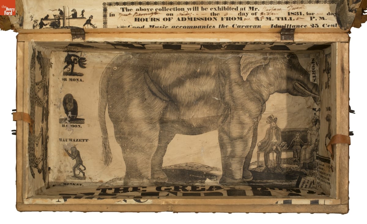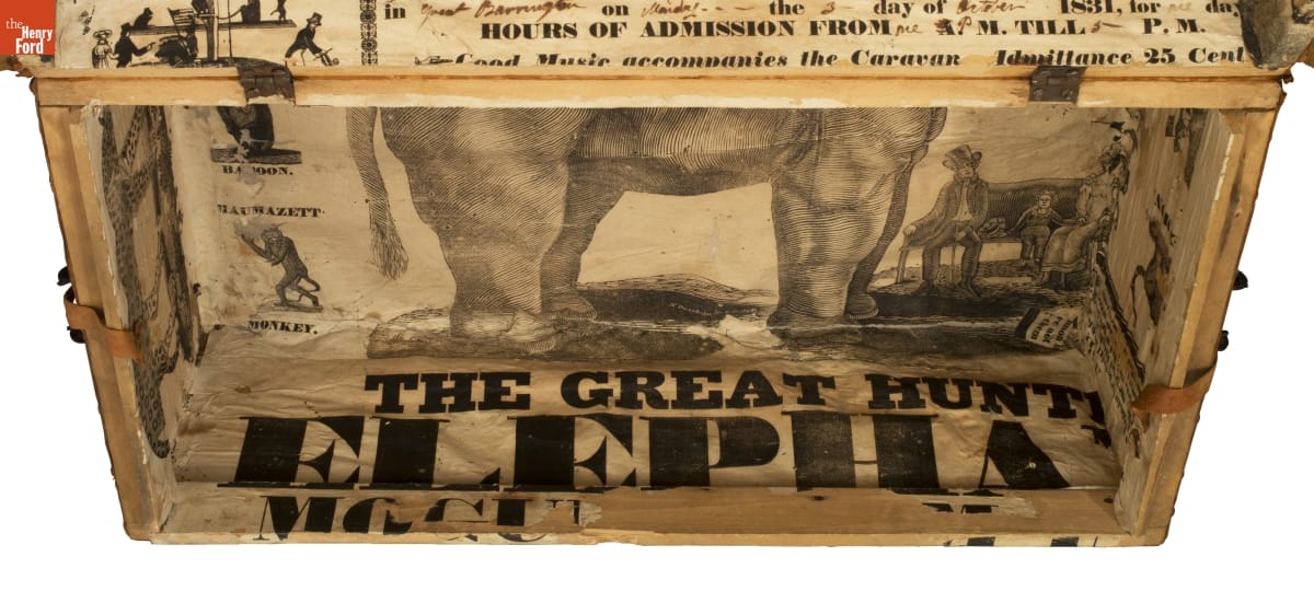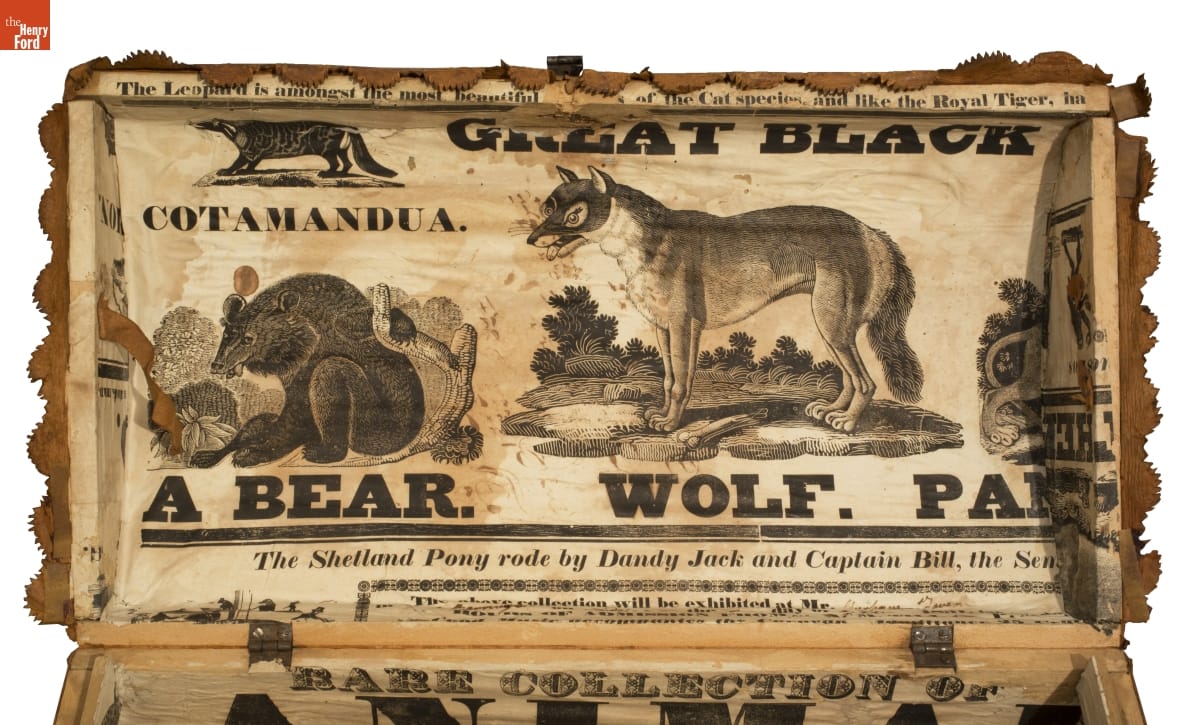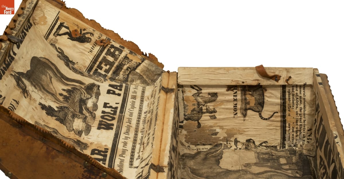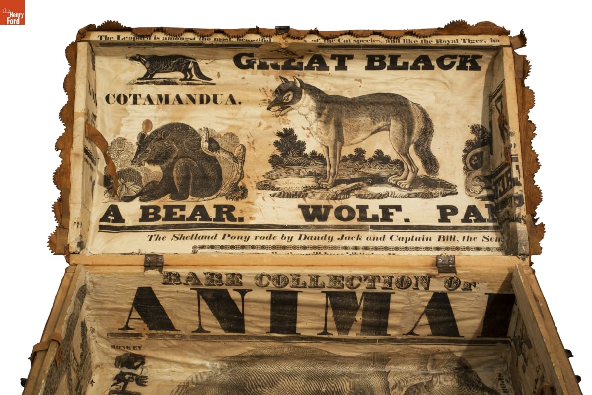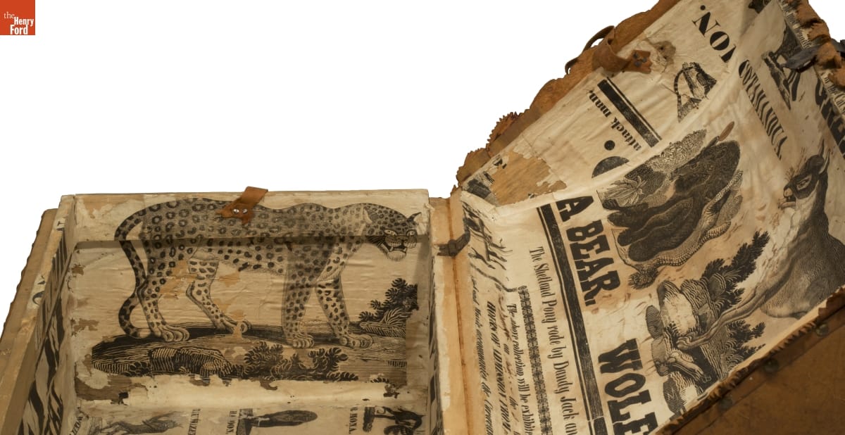 Trunk Lined with Menagerie Broadside, 1820-1840