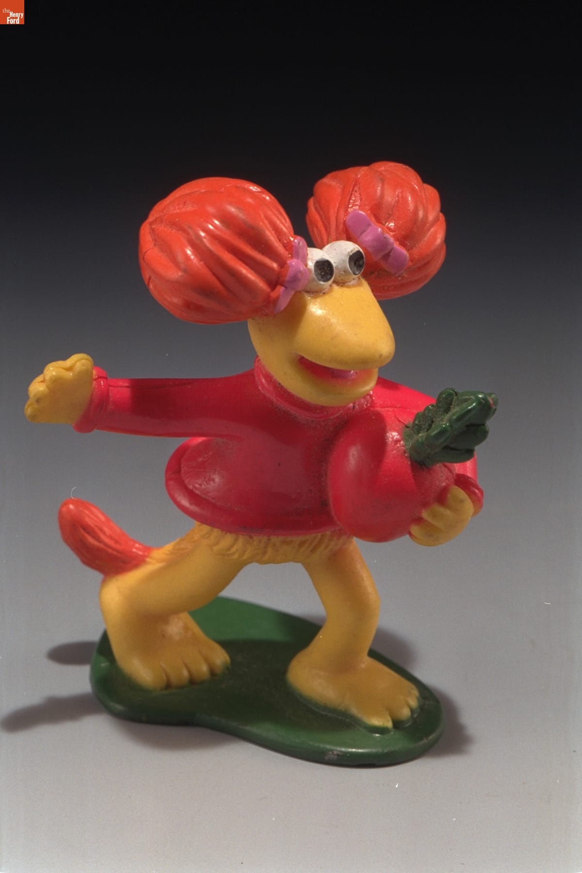 Fast food restaurants often draw on popular culture for their children's meal toys. McDonald's offered this Fraggle Rock Happy Meal premium in 1988. Fraggle Rock -- a children's puppet television program created by Jim Henson in 1983 -- was a raucous, music-filled show about Fraggles, Doozers, and Gorgs as they deal with the serious issues of life.