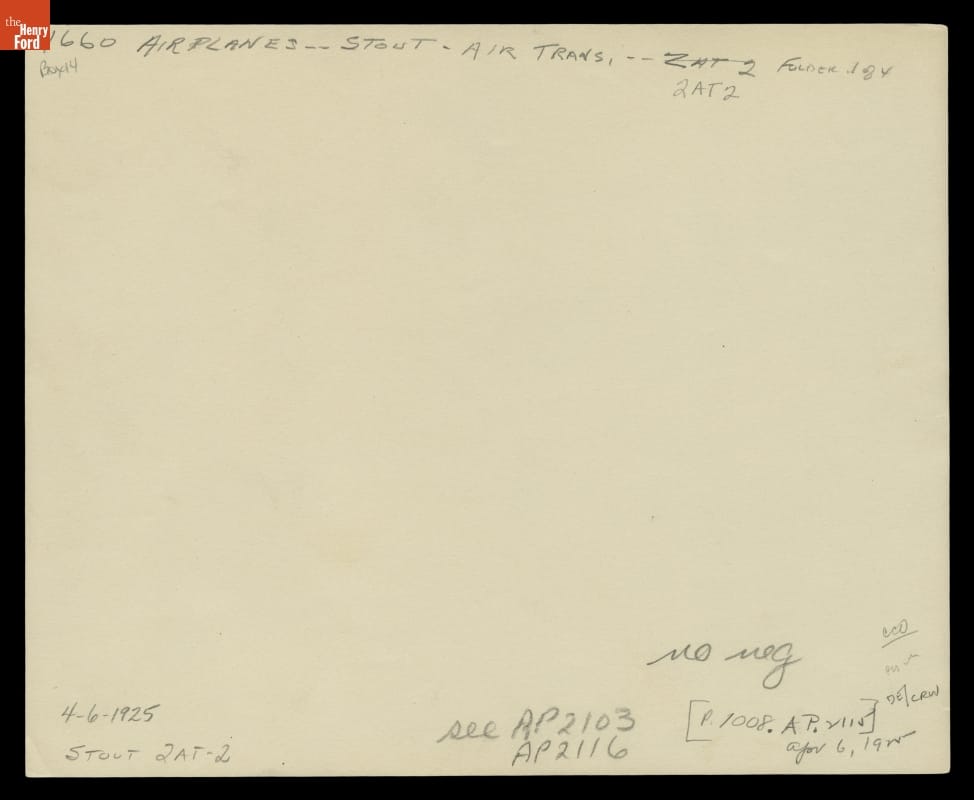 Stout Air Transport 2AT-2 Airplane, "Maiden Dearborn" at Ford Airport, 1925