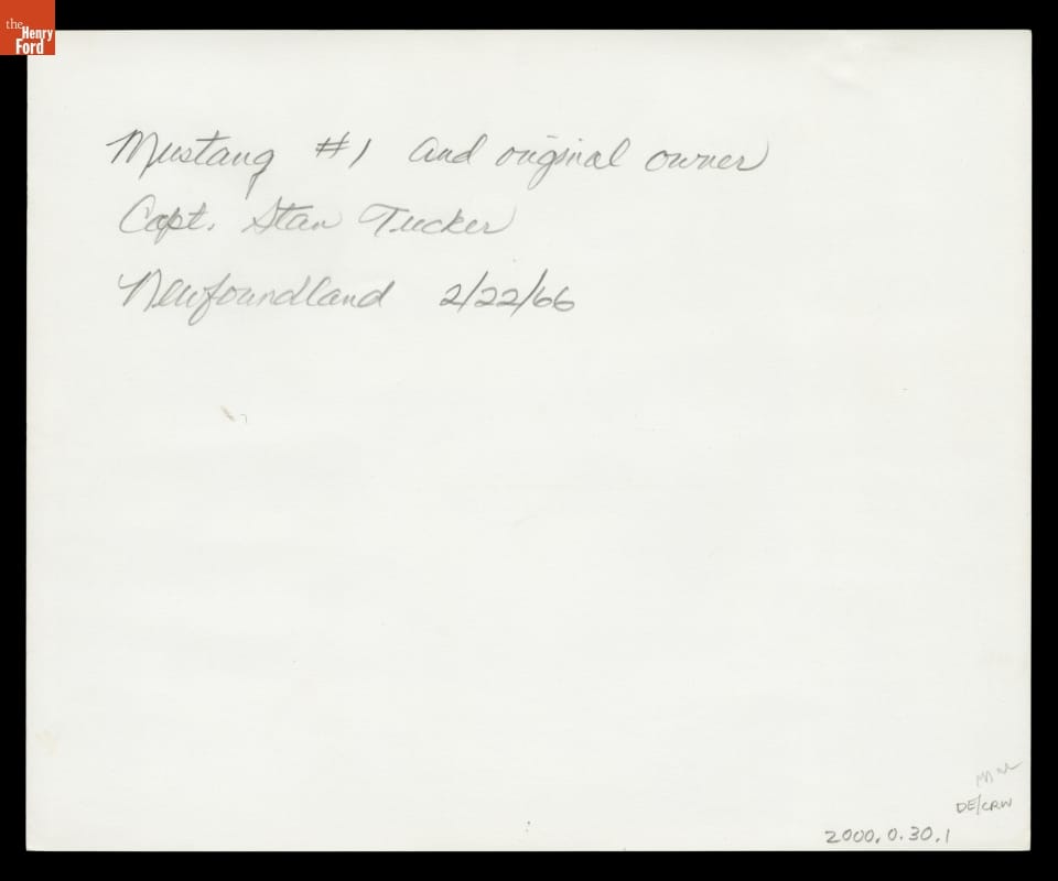 Written in pencil on reverse: Mustang #1 and original owner Capt. Stan Tucker Newfoundland 2/02/66