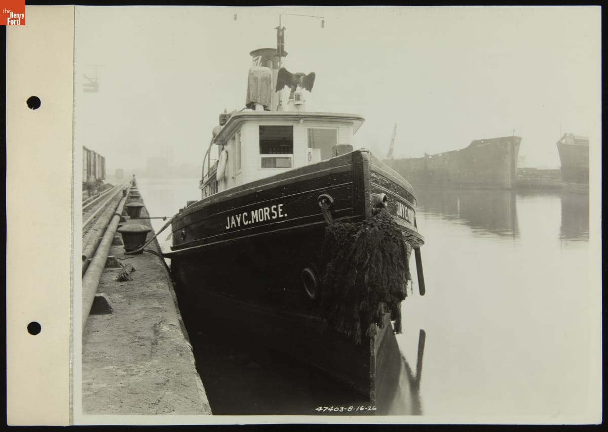 The tugboat Jay C. Morse was built in 1867 in Buffalo, New York. Henry Ford took possession of the wooden tug when he purchased a lumber and milling operation in Michigan's Upper Peninsula. The tug continued to assist ships at Ford's operations along the Lake Superior shore and later at his River Rouge factory near Dearborn. The Morse was scrapped in 1932.