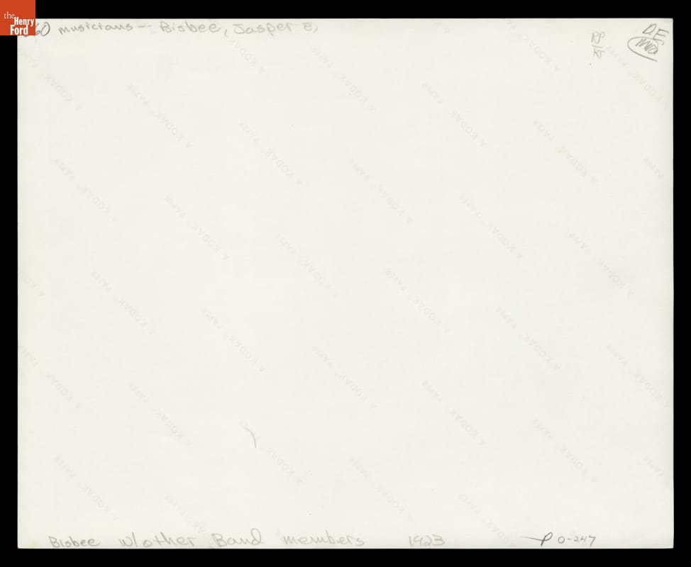 Henry Ford loved Jep Bisbee's fiddling--and the automaker's admiration soon made the elderly Paris, Michigan fiddler a celebrity. Ford met Bisbee in 1923 while on a summer camping trip in northern Michigan. Bisbee at Ford's request, recorded for Edison Records a few months later. Bisbee (shown here with Ford's dance orchestra) won a statewide fiddling contest held in Detroit in January 1926.