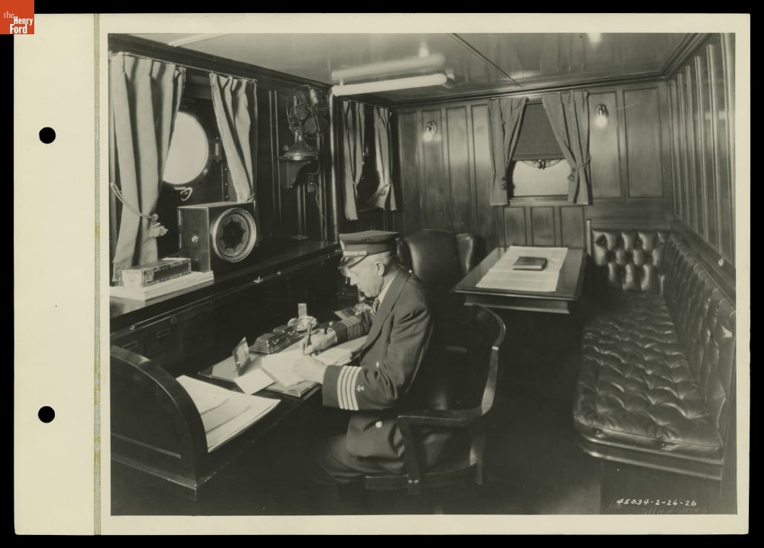 Ford Motor Company Freighter Captain in his Office Onboard Ship, 1926