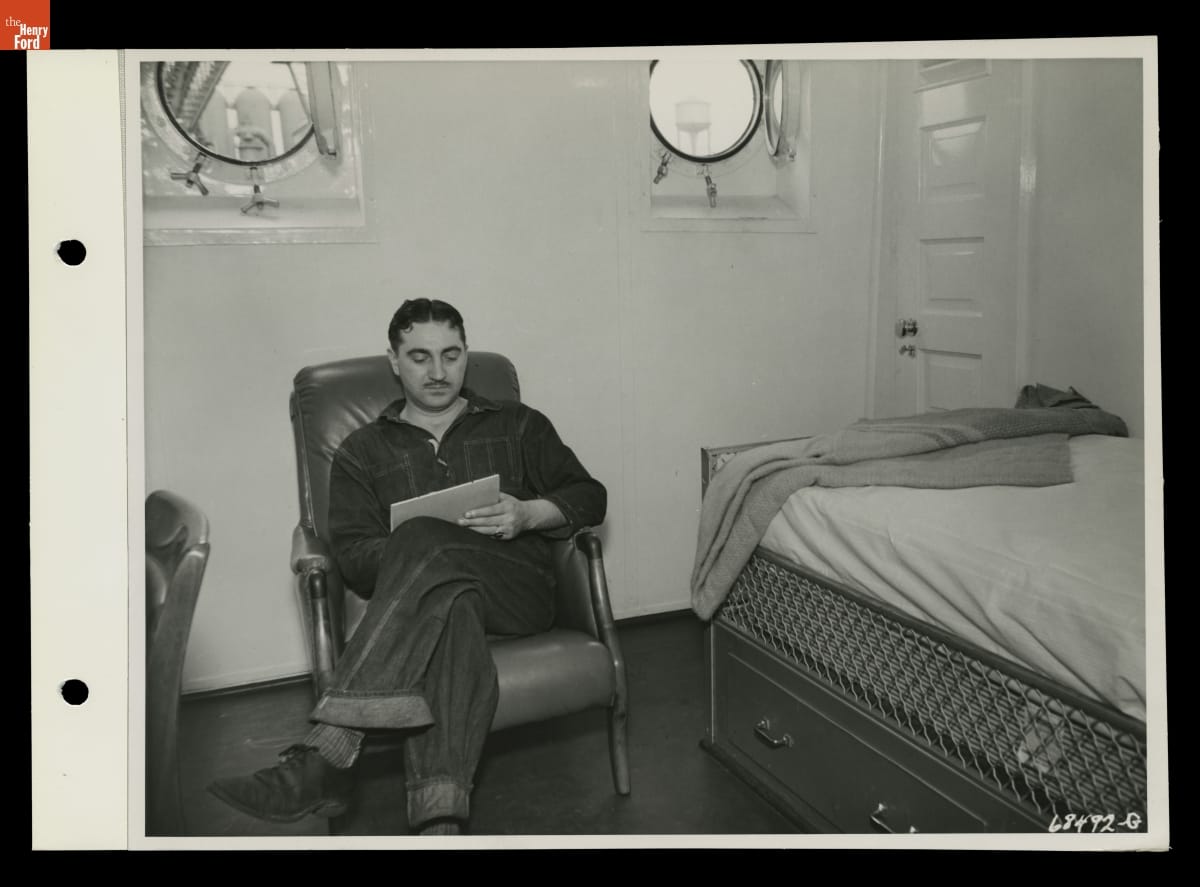 Crew Member in Cabin aboard the Ford Motor Company Ship Green Island, July 1, 1937