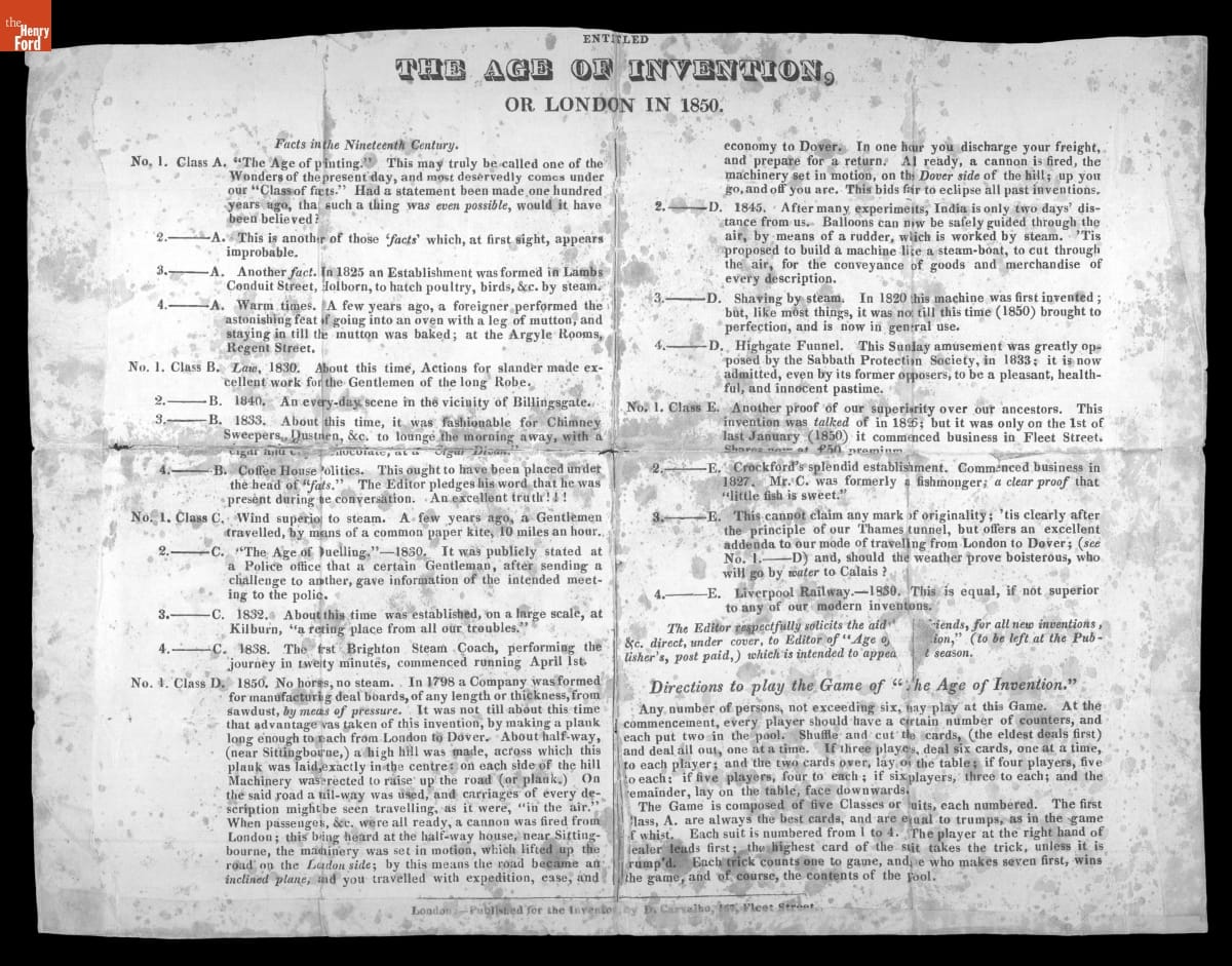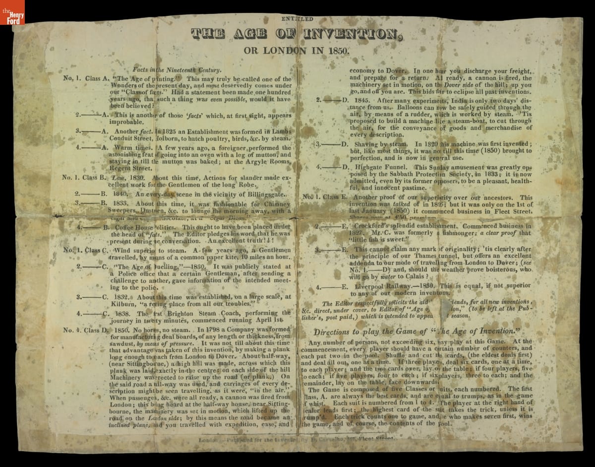 The Age of Invention Game, circa 1850