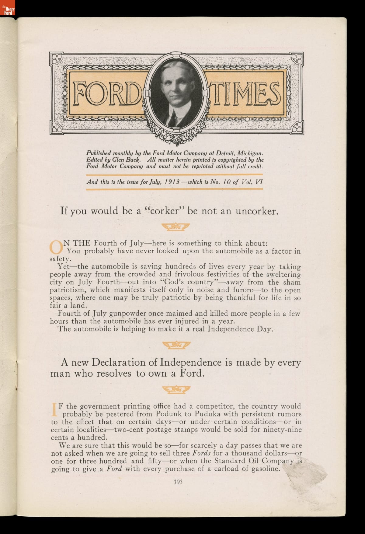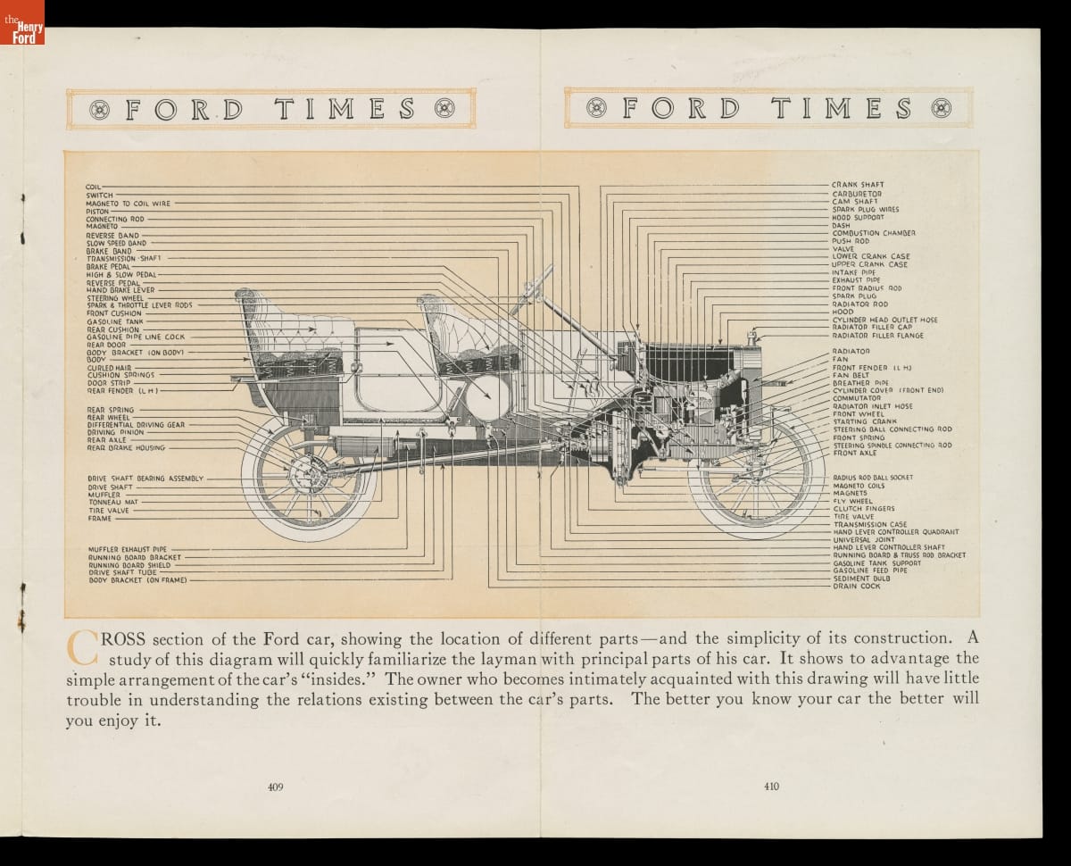 Ford Times was a widely distributed free publication created by the Ford Motor Company. Early issues targeted dealers. Later, editors expanded the magazine's content to cultivate loyalty among Ford owners and attract new customers. Travel articles, testimonials and mechanical advice appeared alongside sales content. Issues usually had colorful cover illustrations and numerous images of Ford automobiles and new Ford products.