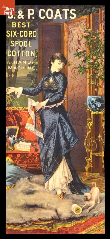 Advertising Sign for J. & P. Coats, "Best Six-Cord Spool Cotton, for Hand and Machine," 1880-1890