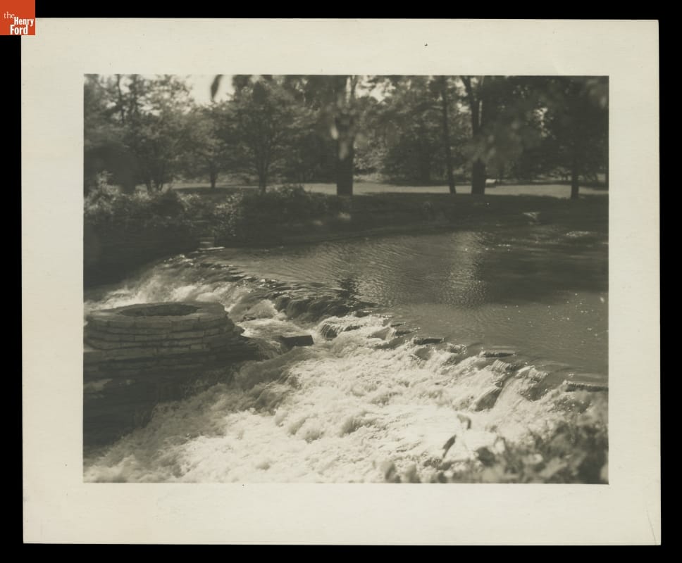Henry and Clara Ford's estate along the Rouge River reflected the couple's dual interest in nature and industry. They hired celebrated landscape architect Jens Jensen to camouflage the hydroelectric dam that powered Fair Lane. His completed design appeared as natural rapids. Jensen's stepping stone bridge and cascades are the most extensive of his renowned river-edge rock creations.