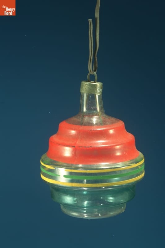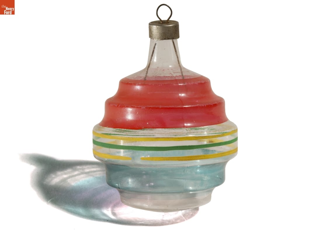 Colorless glass ornaments were created by Corning Glass Works (Corning, New York) and decorated and distributed by Max Eckardt and Sons (headquarters New York, New York), likely in one of their four New Jersey factories.