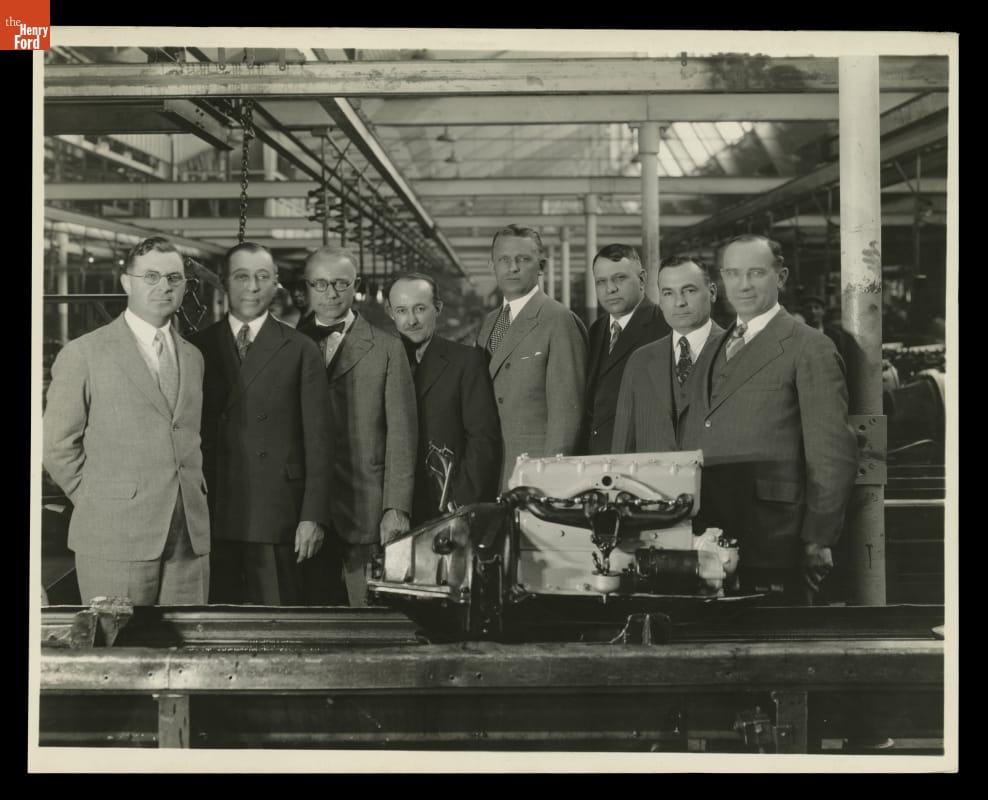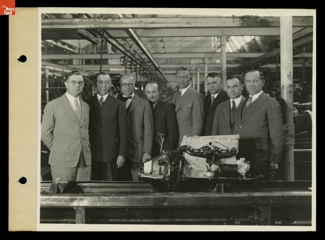 "Oldest" Ford Motor Company Employees with Fifteen-Millionth Model T Engine on Last Day of Model T Production, May 26, 1927