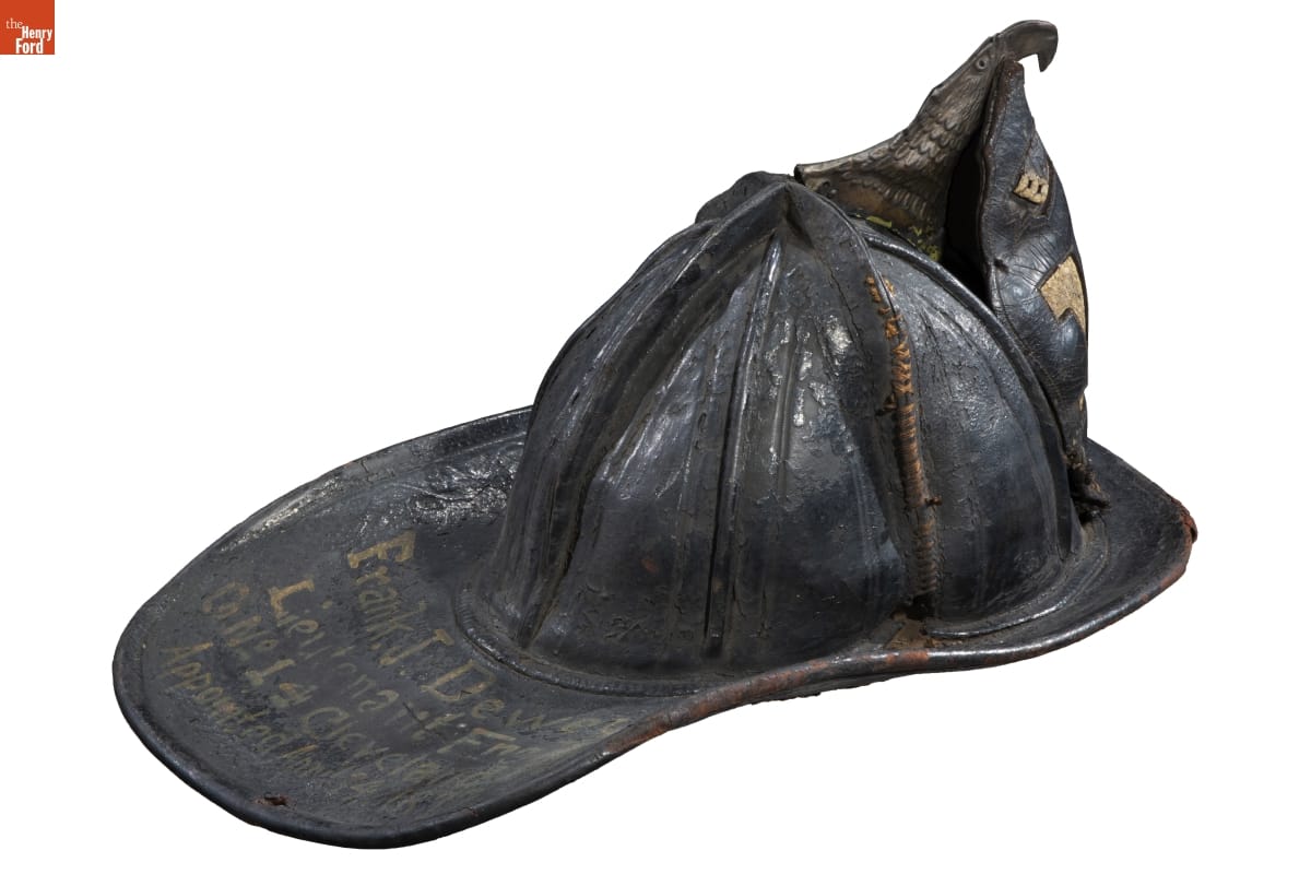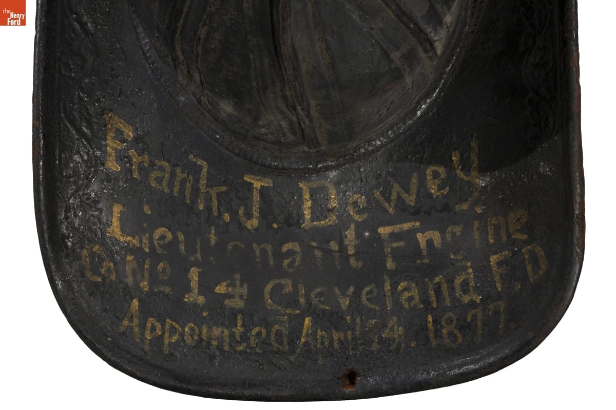 Painted on helmet: Frank J Dewey Lieutenant Engine Co No 14 Cleveland FD Appointed April 14, 1872