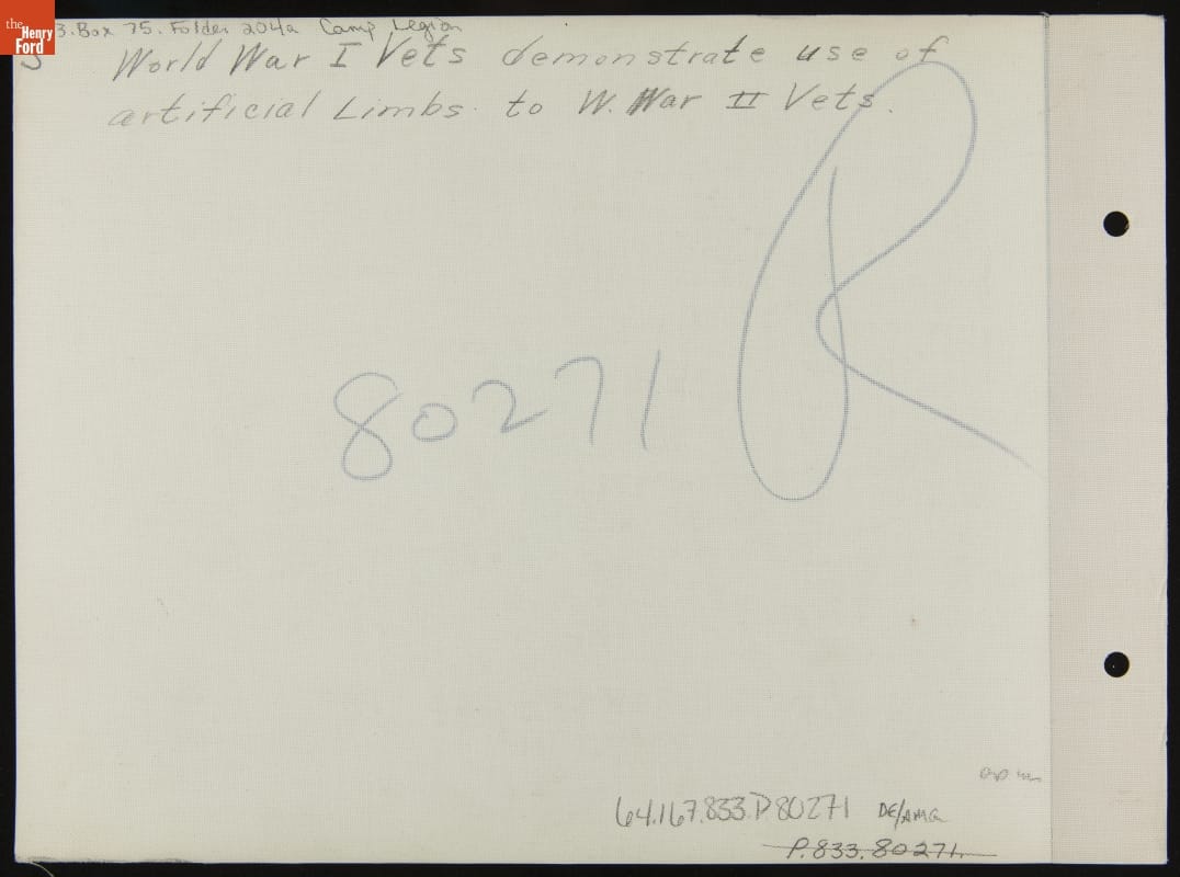 Henry Ford opened Camp Legion, near Dearborn, Michigan, in 1938 for sons of dead or disabled World War I veterans. The young men earned steady wages working there seasonally from April-November. The camp's mission was modified in 1944 to include rehabilitation of World War II veterans with disabilities. Veterans learned new skills to help them reenter the workforce.