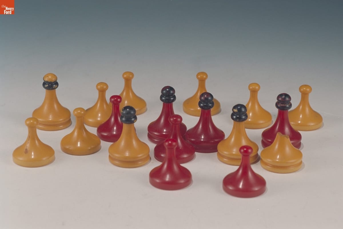 Board games usually have games pieces, tokens or pawns that move across the board. Game pieces represent the player during the game and a player can be represented by more than one piece. This colored plastic set consists of simple pawns, but other more elaborate pieces can be shaped to look like people, animals, or objects.