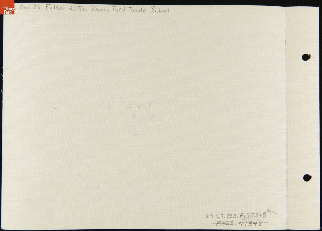 Boys who attended the Henry Ford Trade School learned by doing. The school, the brainchild of Henry Ford, trained teenage boys in a variety of skilled industrial trade work -- machining, metallurgy, drafting, and engine design, among others. Students created useful components for local factories in hands-on lab and shop classes. In addition to the manual training received, academic classes were required.