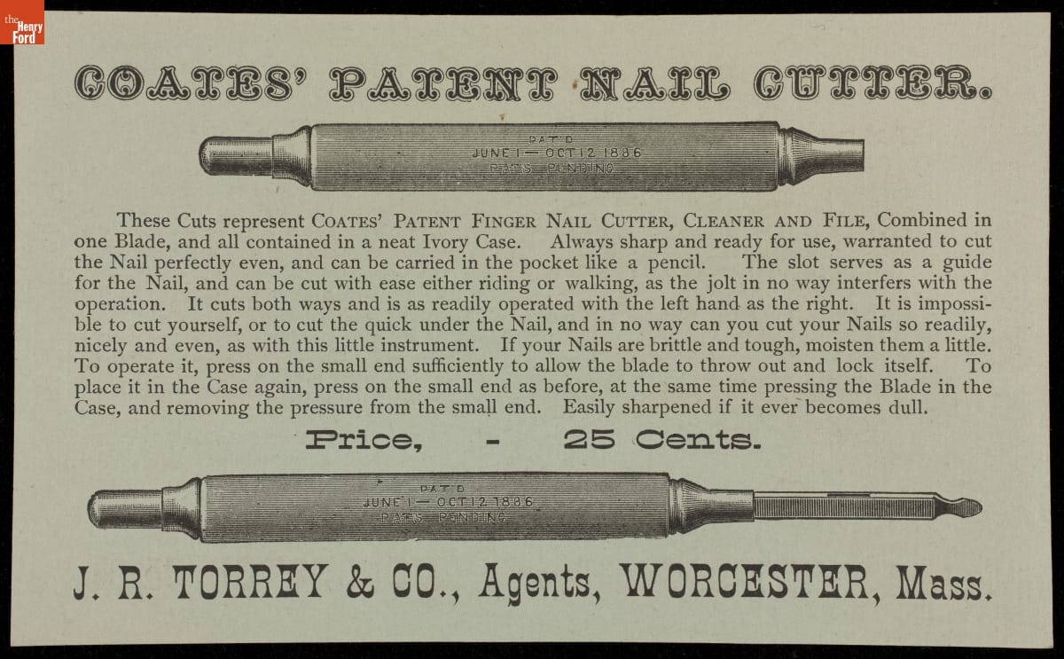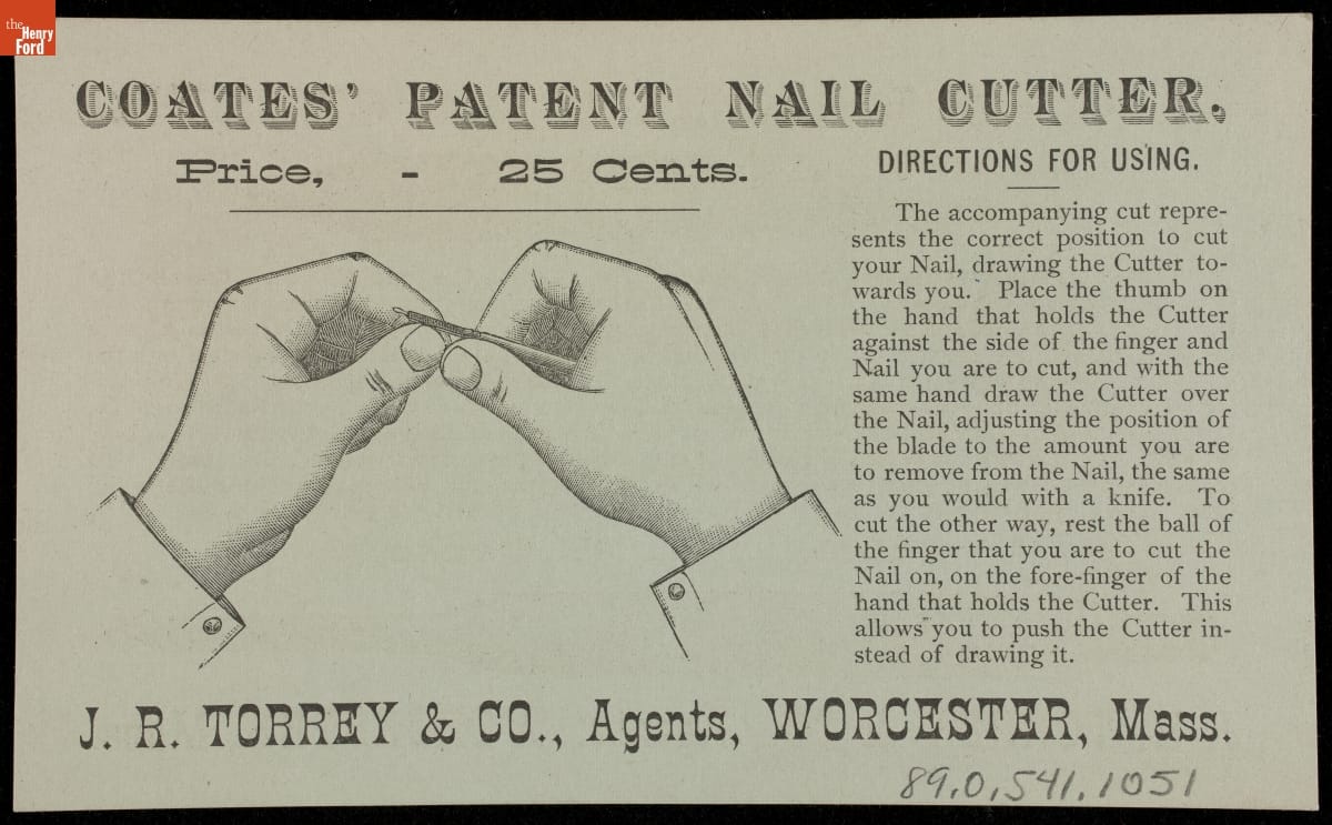 Trade Card for George H. Coates' Patent Nail Cutter, circa 1890