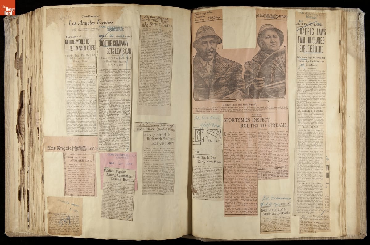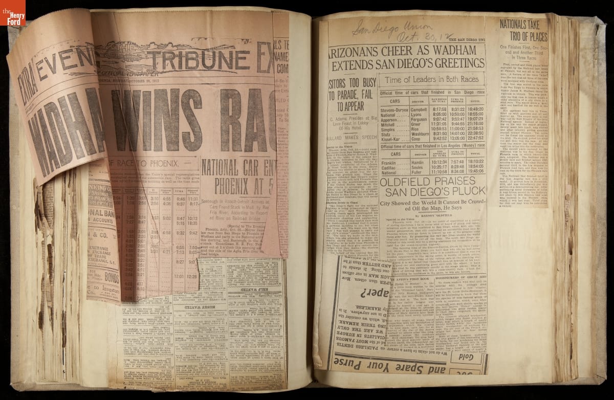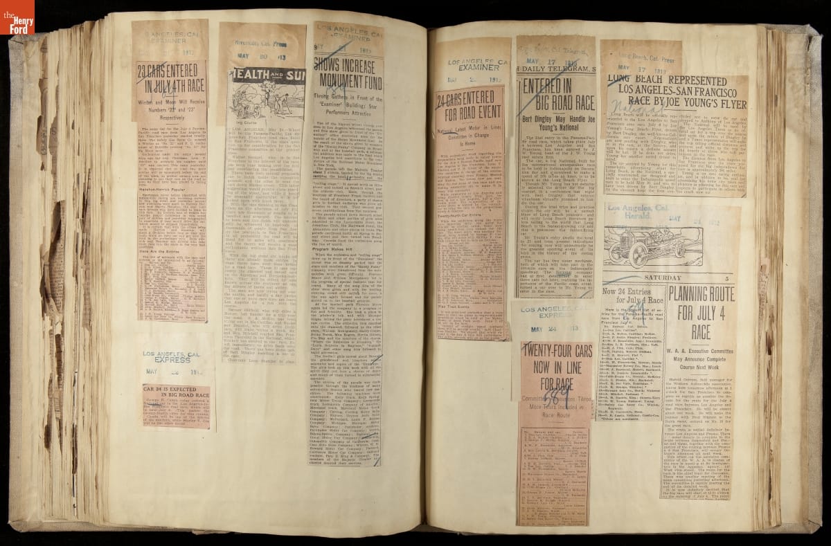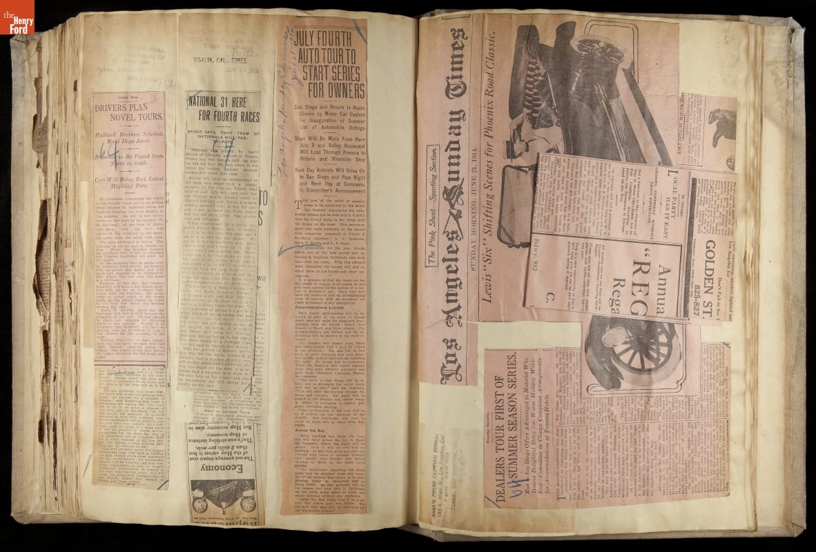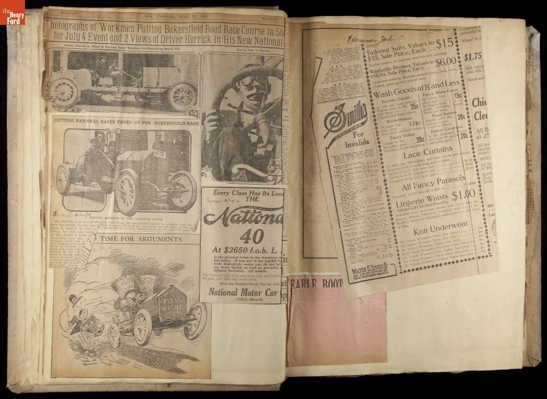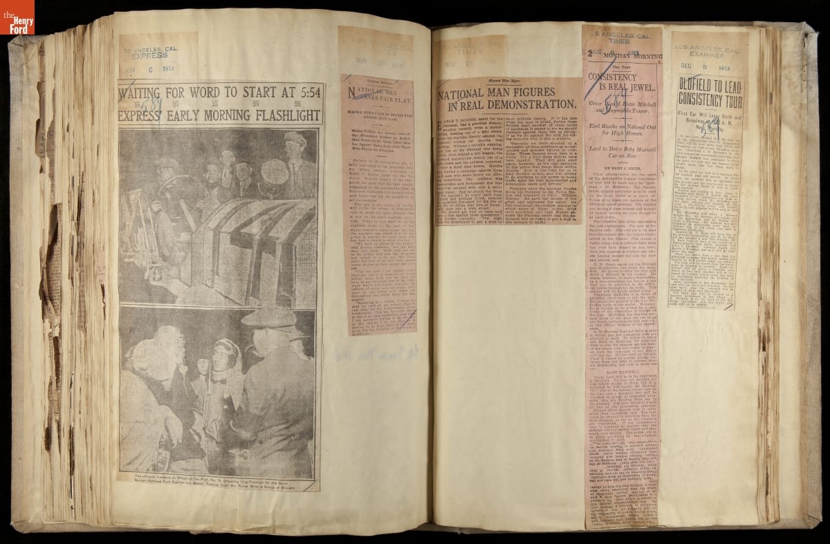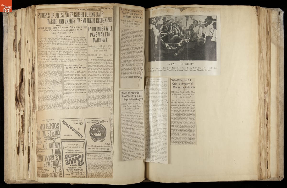 National was formed in Indianapolis in 1900 as a maker of electric cars, but it transitioned to gasoline six years later. The company had an active racing program. This scrapbook, assembled by a distributor in Los Angeles, tracked National's motorsport successes. The company's annual production peaked at something over 1,800 cars in 1915. National ended operations in 1924.