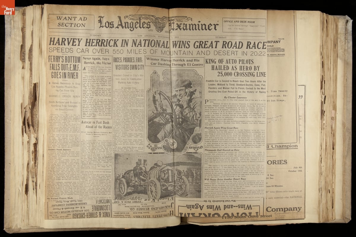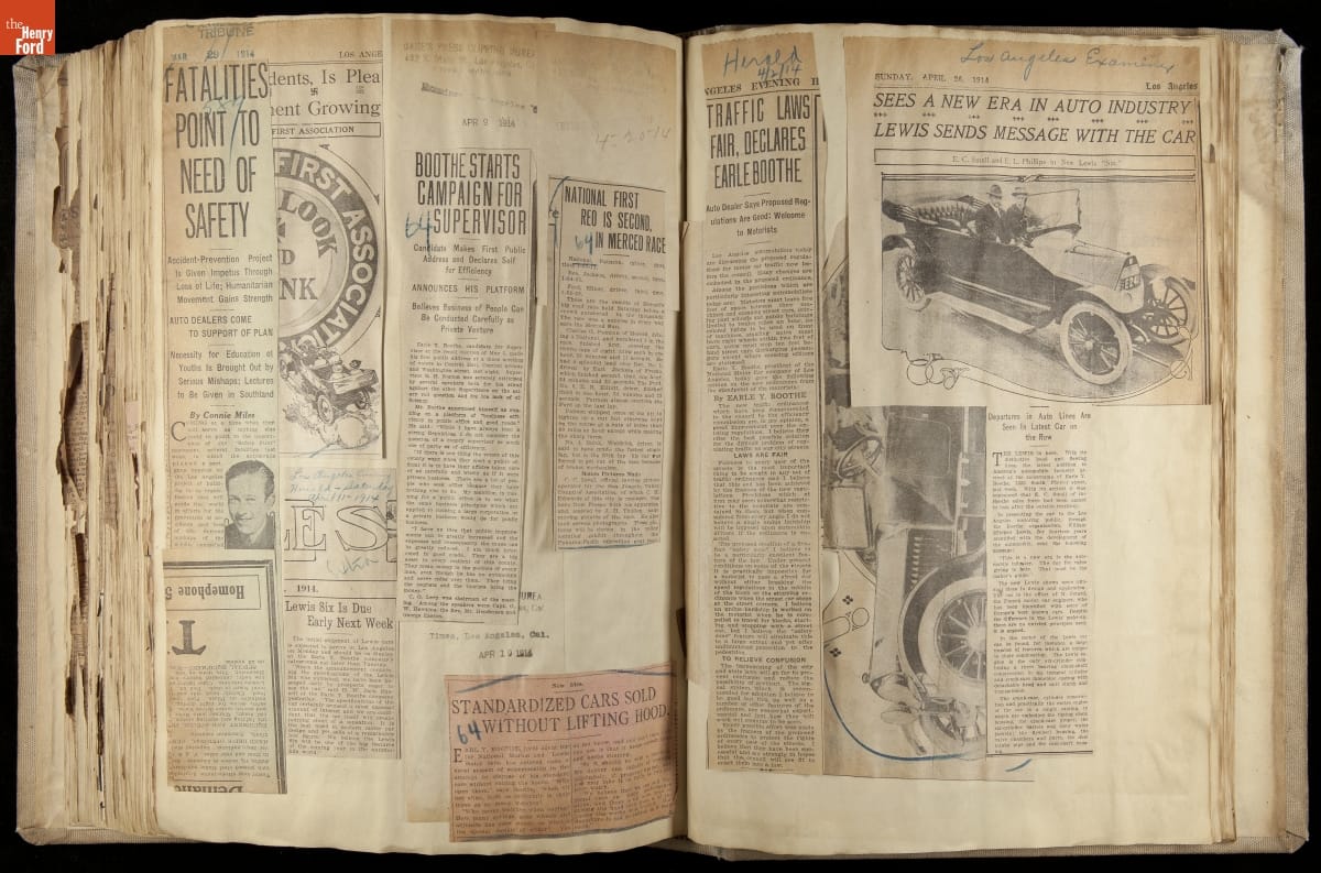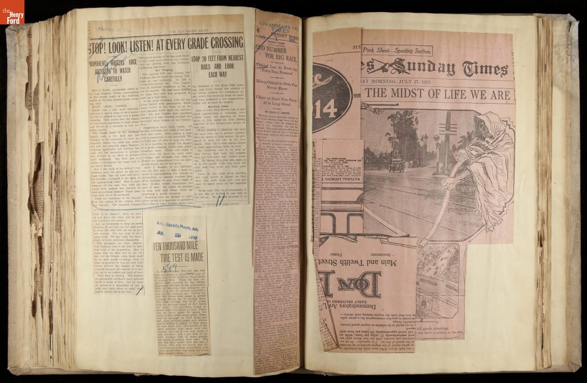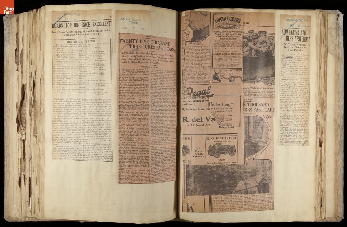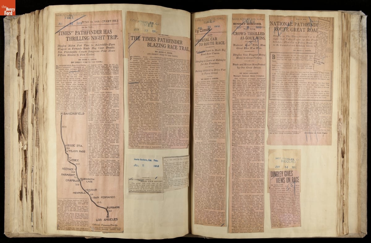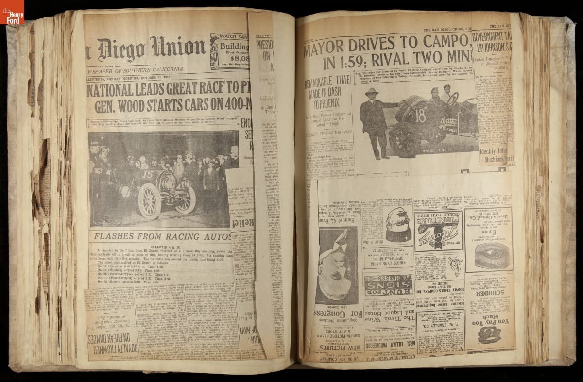 National was formed in Indianapolis in 1900 as a maker of electric cars, but it transitioned to gasoline six years later. The company had an active racing program. This scrapbook, assembled by a distributor in Los Angeles, tracked National's motorsport successes. The company's annual production peaked at something over 1,800 cars in 1915. National ended operations in 1924.