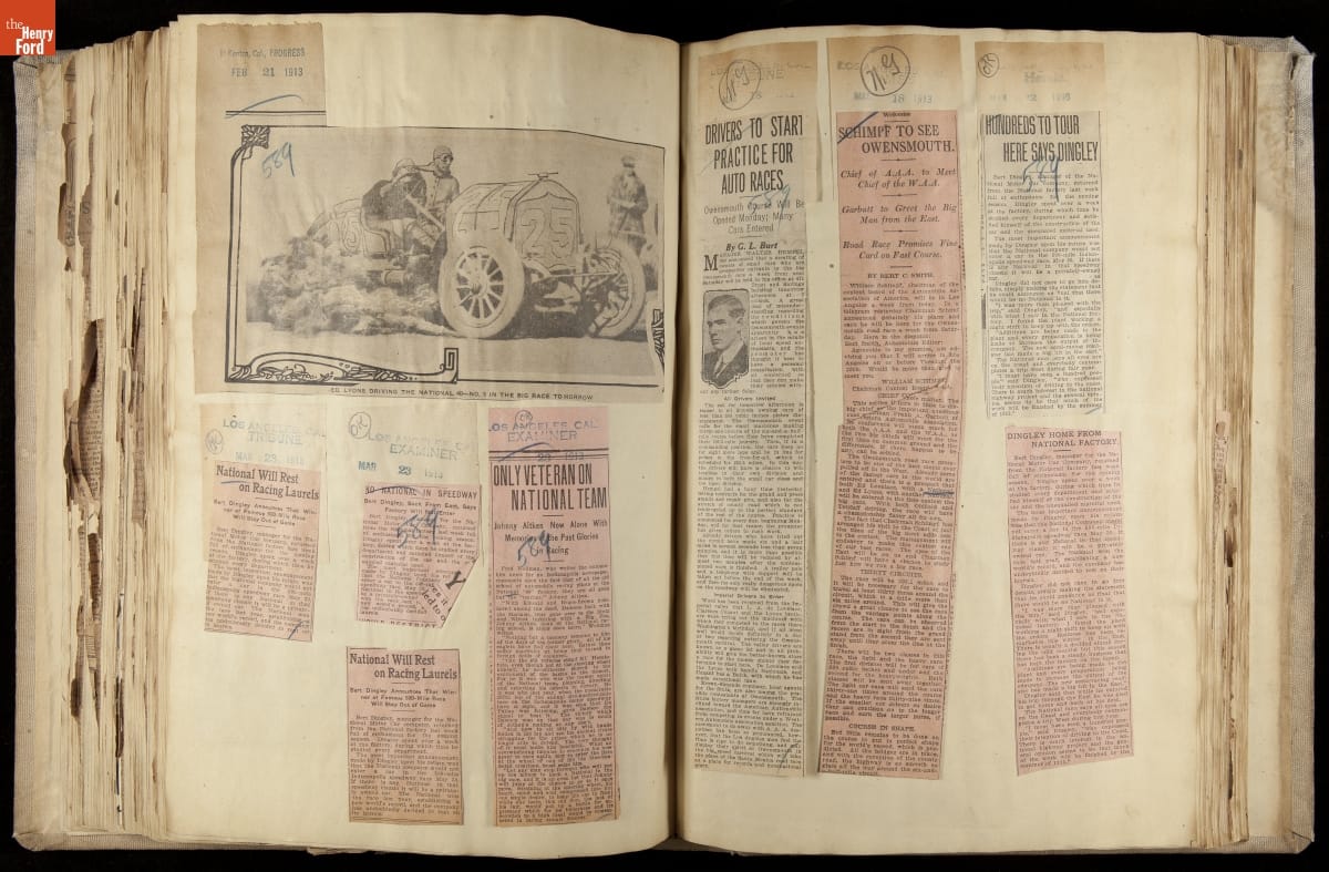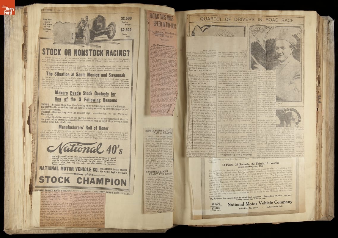 Scrapbook, National Motor Car Company Auto Racing, Race Cars and Drivers, 1911-1914