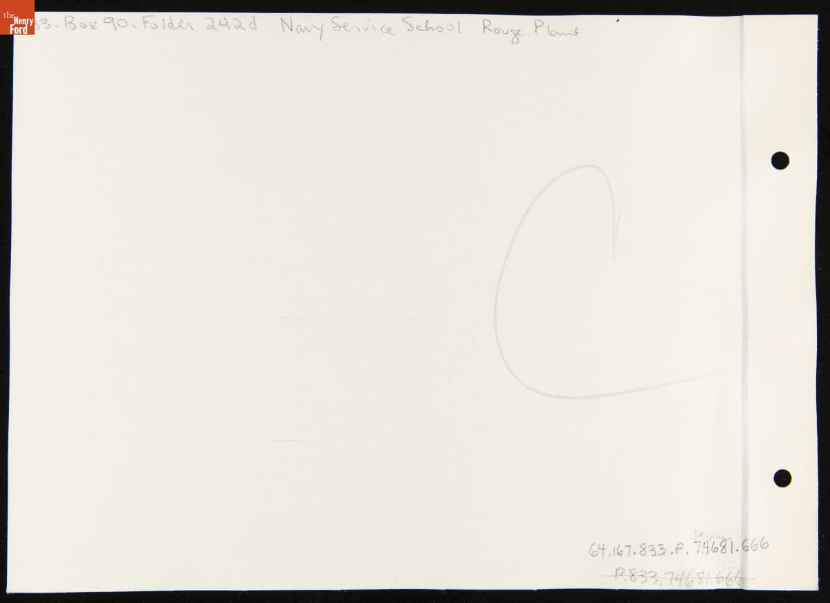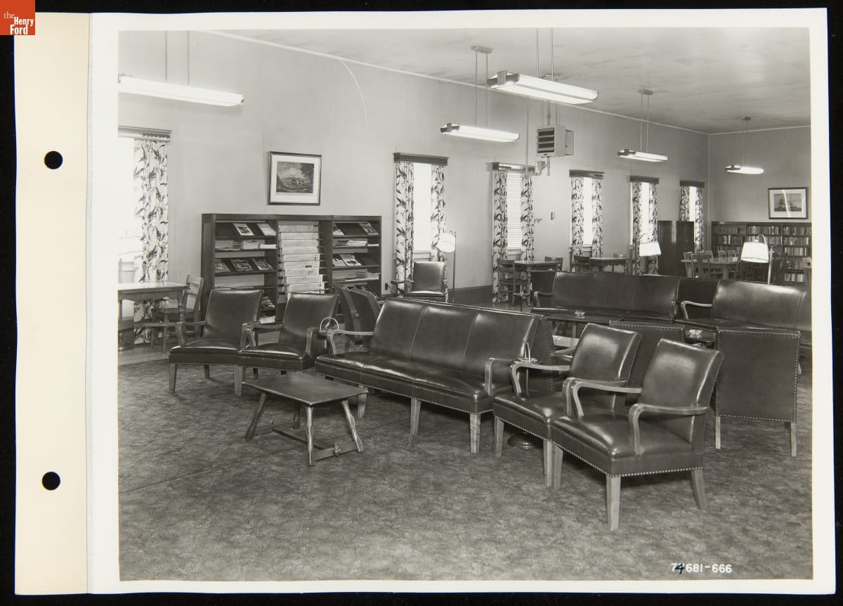 The United States Navy Service School opened in Dearborn, Michigan, in early 1941. The school, built on land leased to the Navy at Ford's Rouge Plant, trained thousands of young recruits in skilled trades during World War II. Ford also provided housing and recreational facilities for the students. The library offered recruits a place to read and relax after hours in the classroom.