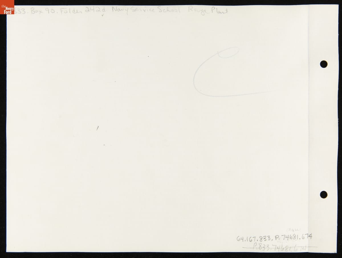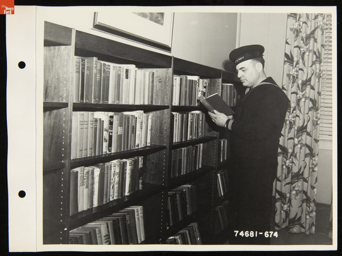 The United States Navy Service School opened in Dearborn, Michigan, in early 1941. The school, built on land leased to the Navy at Ford's Rouge Plant, trained thousands of young recruits in skilled trades during World War II. Ford also provided housing and recreational facilities for the students. The library offered recruits a place to read and relax after hours in the classroom.
