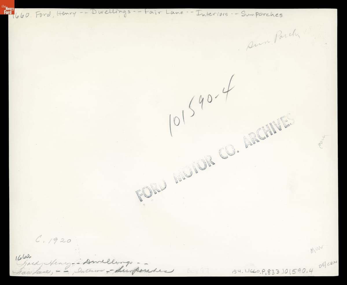 Sun Porch at Fair Lane, Home of Henry Ford, circa 1925