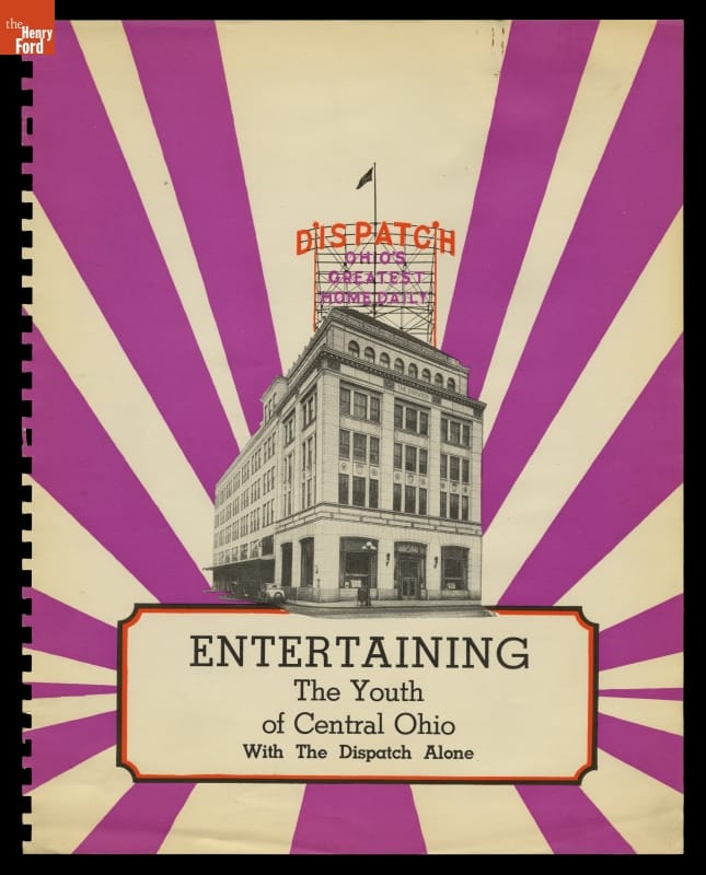 The Columbus Dispatch newspaper published this 1936 scrapbook to spotlight its promotion of children's activities in central Ohio. Featured events included a rabbit drawing contest, a yo-yo contest, a family picnic, a bicycle derby, a soap box derby, a playground day, a doll and pet parade, a penmanship contest, a turkey coloring contest, and a toy drive.