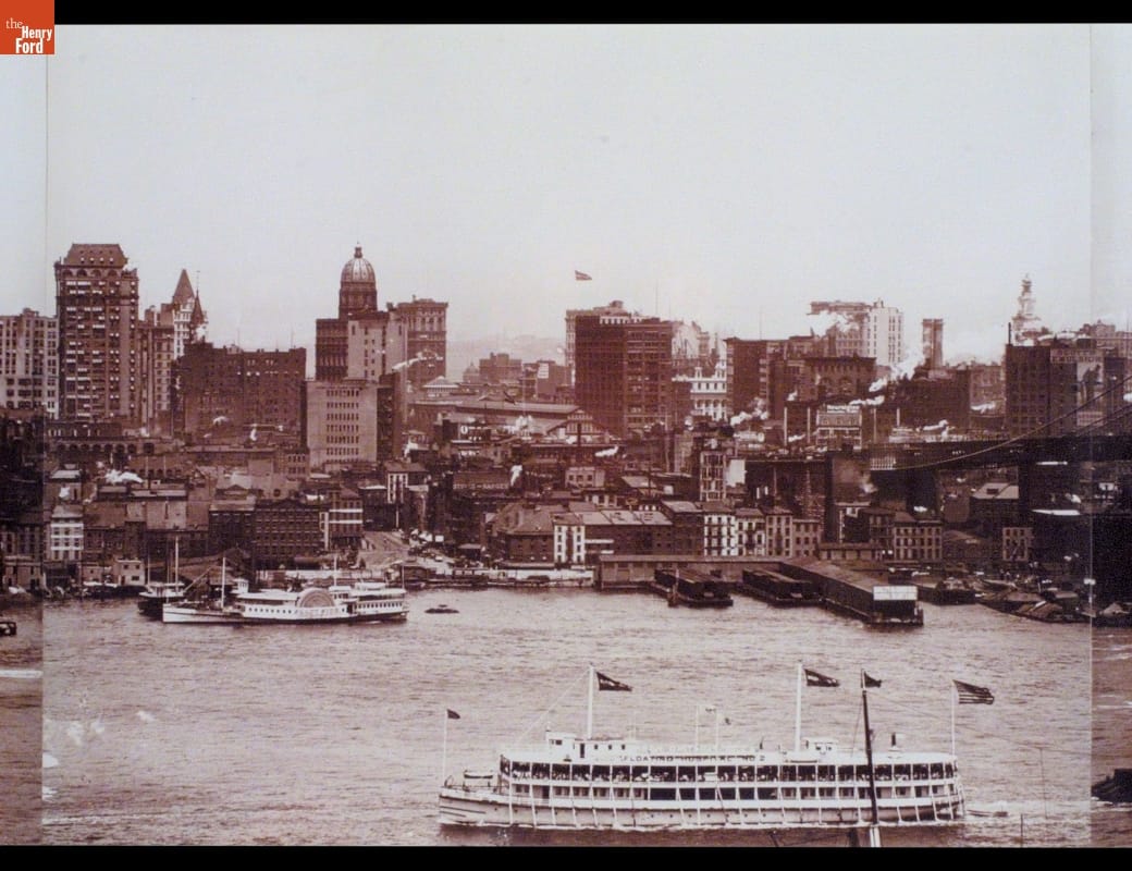 New York City Skyline and Harbor from Brooklyn, Panoramic View, circa 1903
