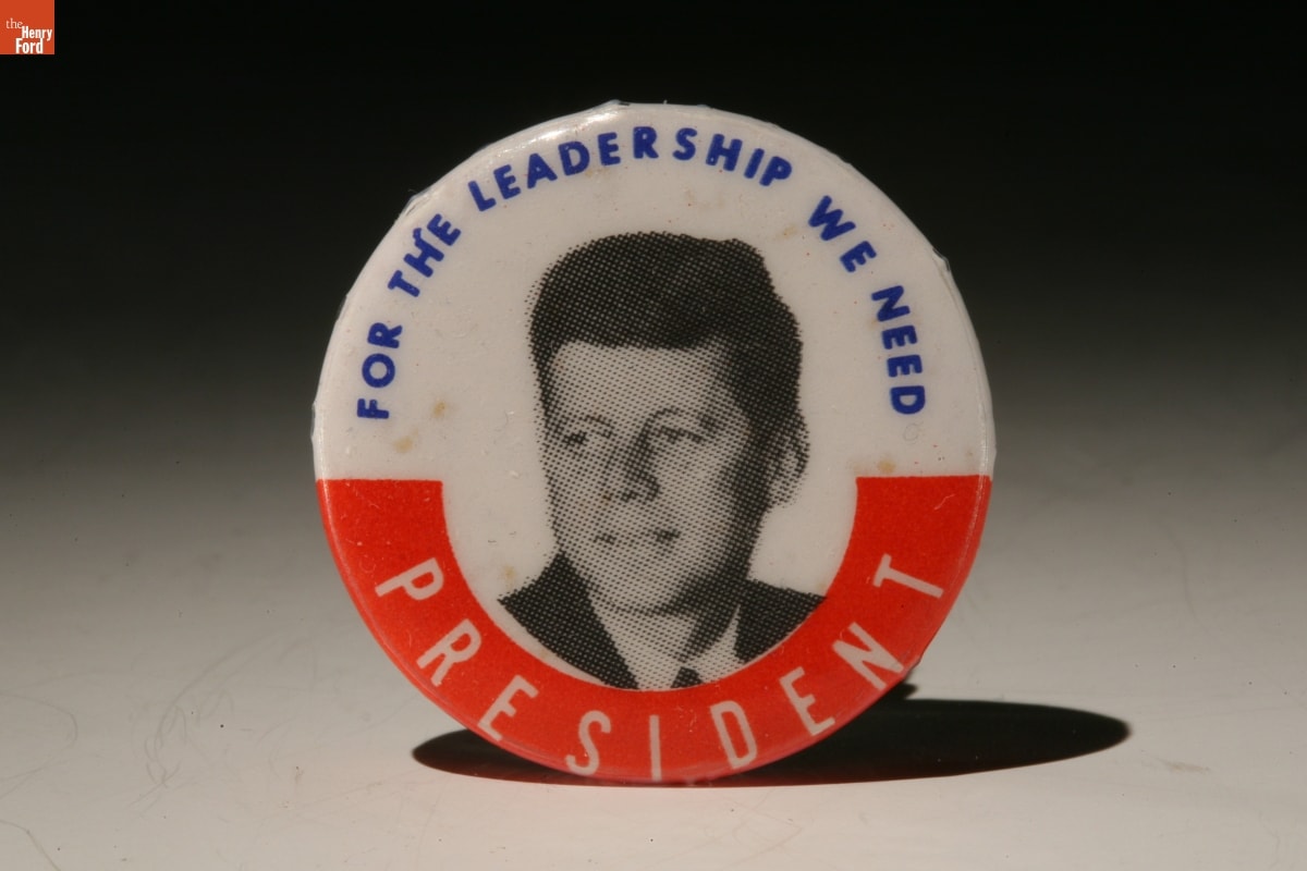 Using giveaways like this campaign button, Democratic presidential candidate John F. Kennedy launched an exhaustive campaign in 1960 against Republican opponent Vice President Richard M. Nixon. Despite charges that he lacked experience in foreign affairs and that his Catholic background would hurt him, Kennedy's knowledge and maturity eventually won him the very close 1960 election.