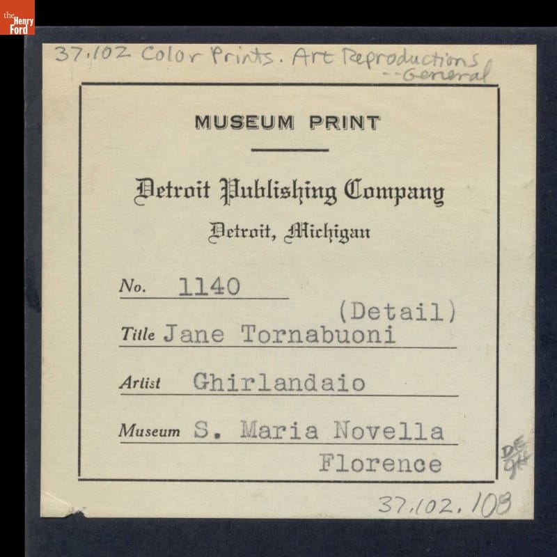 Photochrom Reproduction of the 1488 Painting "The Portrait of Giovanna Tornabuoni"