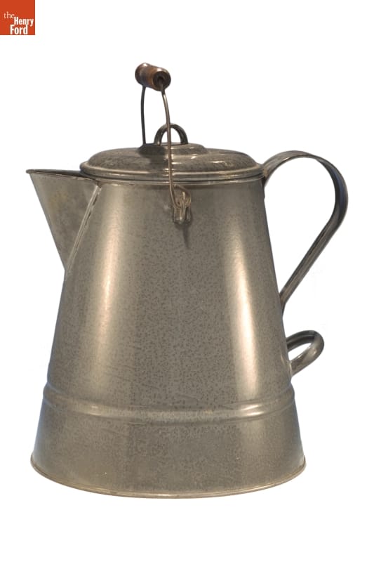 When enamel-coated ironware was introduced in 1874, manufacturers marketed its durability and handsome mottled gray surface--the origin of its common name, "graniteware." Graniteware was also more lightweight than cast iron and would not rust or corrode, like tinware. Though most graniteware was eventually replaced by enamel-coated steel (introduced in the 1890s) it could be found in American kitchens well into the 1900s.