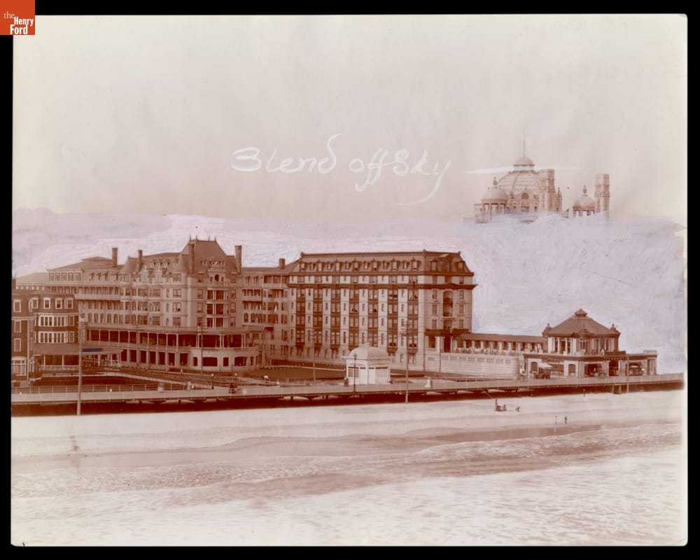 Dennis Hotel, Atlantic City, New Jersey, circa 1908, Photograph Retouching Process in Progress