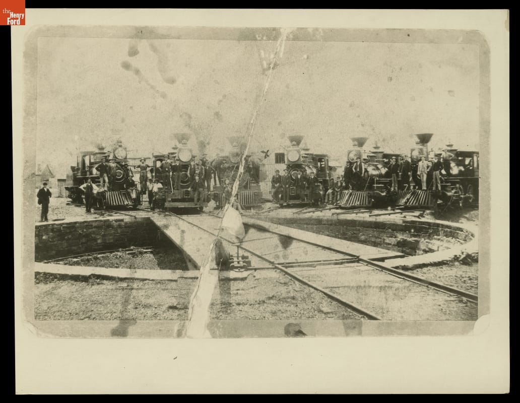 Locomotives at the Detroit, Toledo & Ironton Roundhouse, Jackson, Ohio, 1883