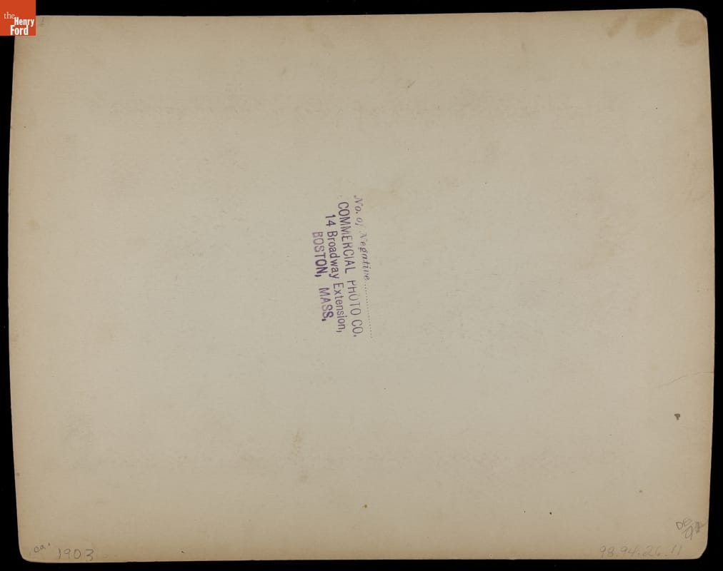 Ink stamp on verso: No. OF NEGATIVE__ COMMERCIAL PHOTO CO. 14 BROADWAY EXTENSION BOSTON, MASS. /.