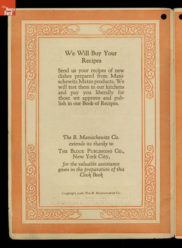 Authored by B. Manischewiz Co. Published by Block Publishing Company, New York, New York.