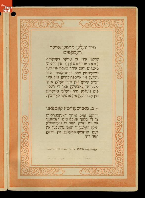 Recipe Booklet, "Tempting Kosher Dishes Recipe Book," 1926