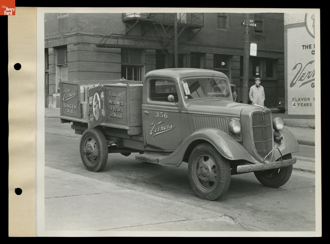 Vernor's Ginger Ale, one of the oldest surviving soft drinks in the United States, was created in Detroit. By the mid-1910s, innovations in bottling technology and the increasing affordability of the automobile allowed the company to begin delivery of the beverage. Vernor's Ginger Ale's first delivery fleet, purchased in 1916, included eight Ford Model T trucks. The company continued to use Ford vehicles for many years.