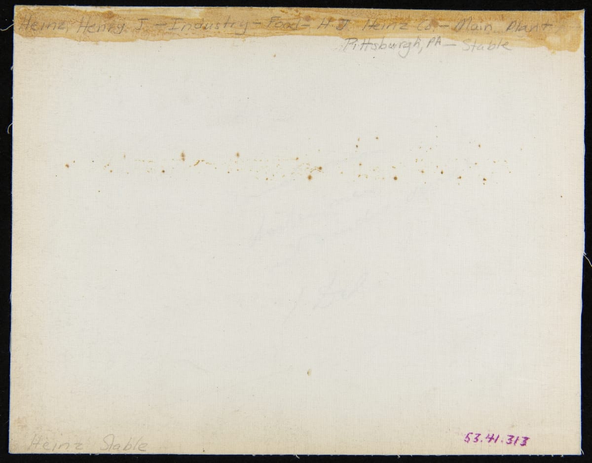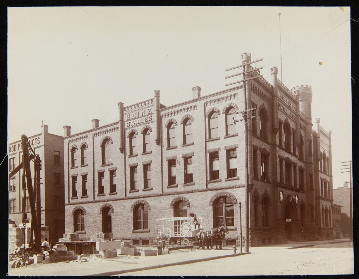 Before the 1920s, the H.J. Heinz Company transported its goods by rail and by horse-drawn wagon. Its factory in Pittsburgh, Pennsylvania, had top-of-the-line stables (seen here), sometimes referred to as "equine palaces," where horses received the best feed and care.