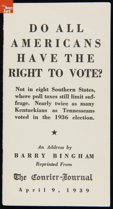 "Do All Americans Have the Right to Vote?," an Address by Barry Bingham, April 13, 1939