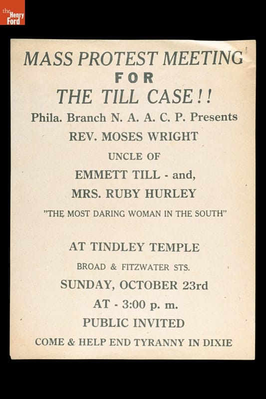 "Mass Protest Meeting for the Till Case!!," Sunday, October 23, 1955